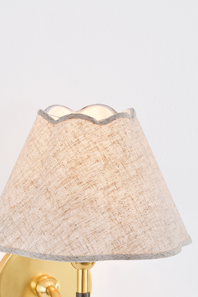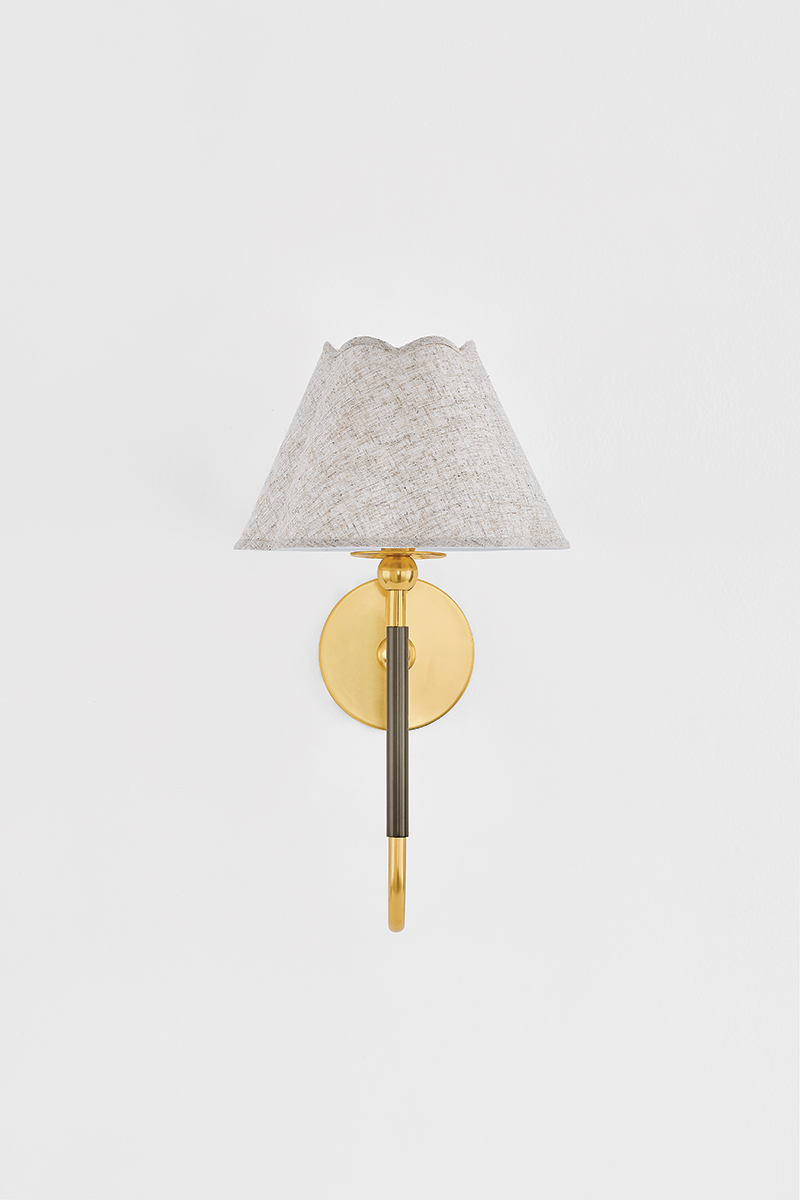The Janie family updates a traditional framework with contemporary silhouettes and an unexpected mix of materials, making it ideal for both classic and modern spaces. Scalloped shades cast a softly diffused light, creating a subtle, curved shadow. The contrasting True Bronze sleeve against the Aged Brass frame accentuates Janie’s fresh, re-imagined form. Designed to be layered together, these fixtures are designed in honor of Mandy’s beloved family of in-laws.