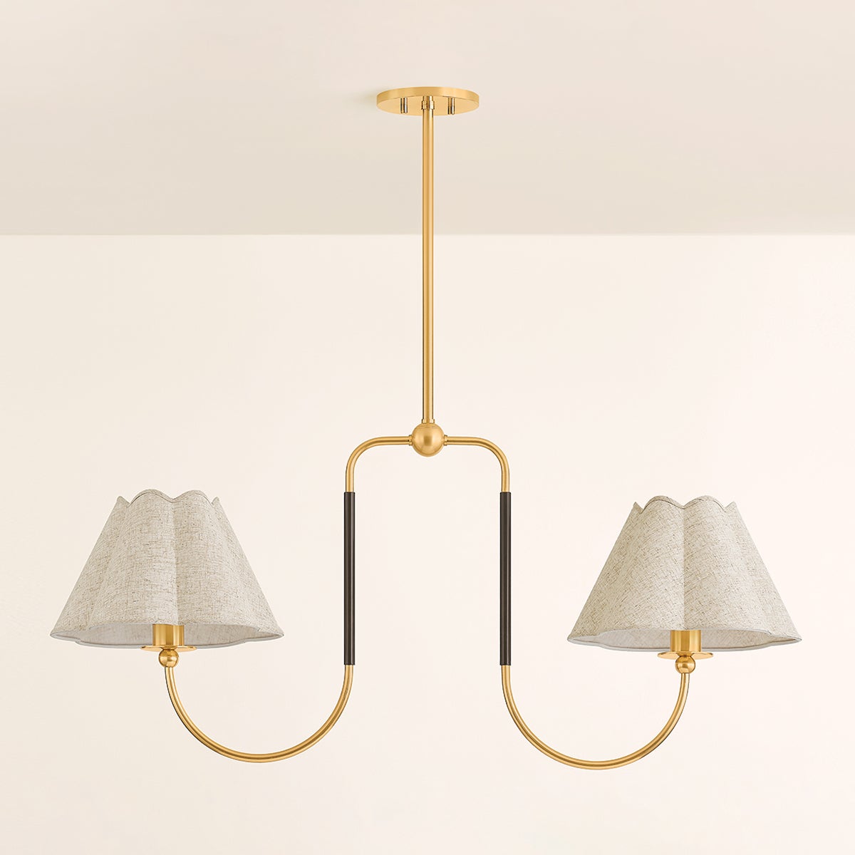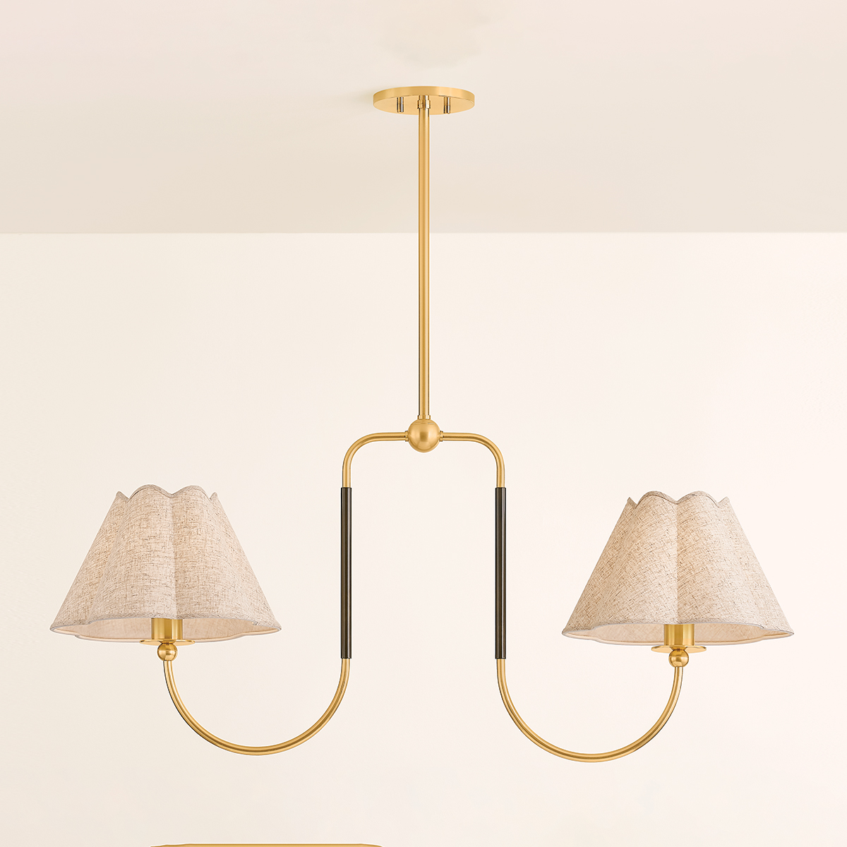 The Janie family updates a traditional framework with contemporary silhouettes and an unexpected mix of materials, making it ideal for both classic and modern spaces. Scalloped shades cast a softly diffused light, creating a subtle, curved shadow. The contrasting True Bronze sleeve against the Aged Brass frame accentuates Janie’s fresh, re-imagined form. Designed to be layered together, these fixtures are designed in honor of Mandy’s beloved family of in-laws.