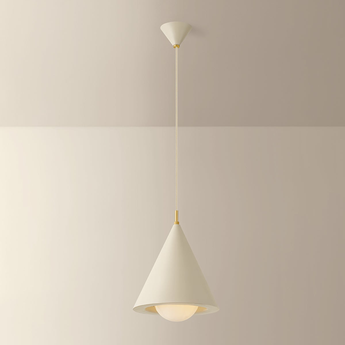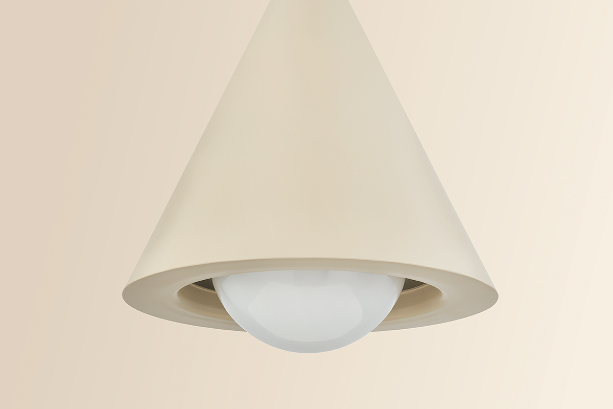 A celebration of modern geometry, Jolene balances form, material, and light. These pendants come in cone and dome silhouettes that can be styled together or apart. A pronounced flange along the lower edge of each accentuates the confident proportions, white opal glass diffuser. Jolene is finished with a Textured Bisque finish, creating a sense of hand-sculpted tactility.