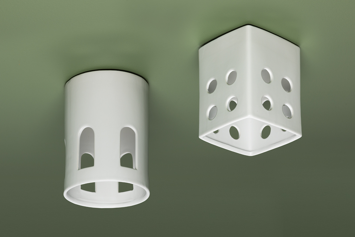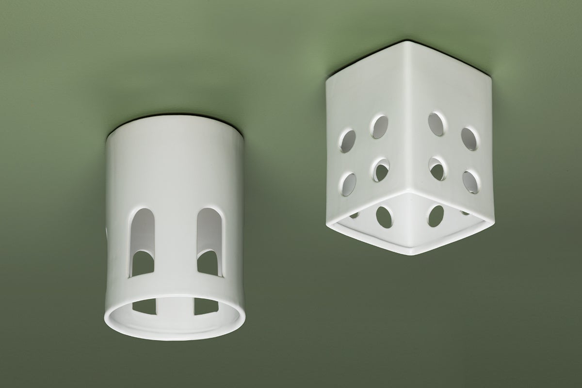Inspired by the desert modern movement and reminiscent of terracotta ceramics, Tatum is clean, warm and inviting. Perfectly-imperfect shaped shades in recognizable forms give the fixture a hand-crafted look. Perforations in the shade allow light to flicker through the open spaces in an almost candle-like way; light also softly reflects off the ceramic matte material and casts a beautiful downlight.