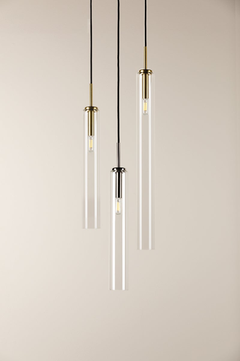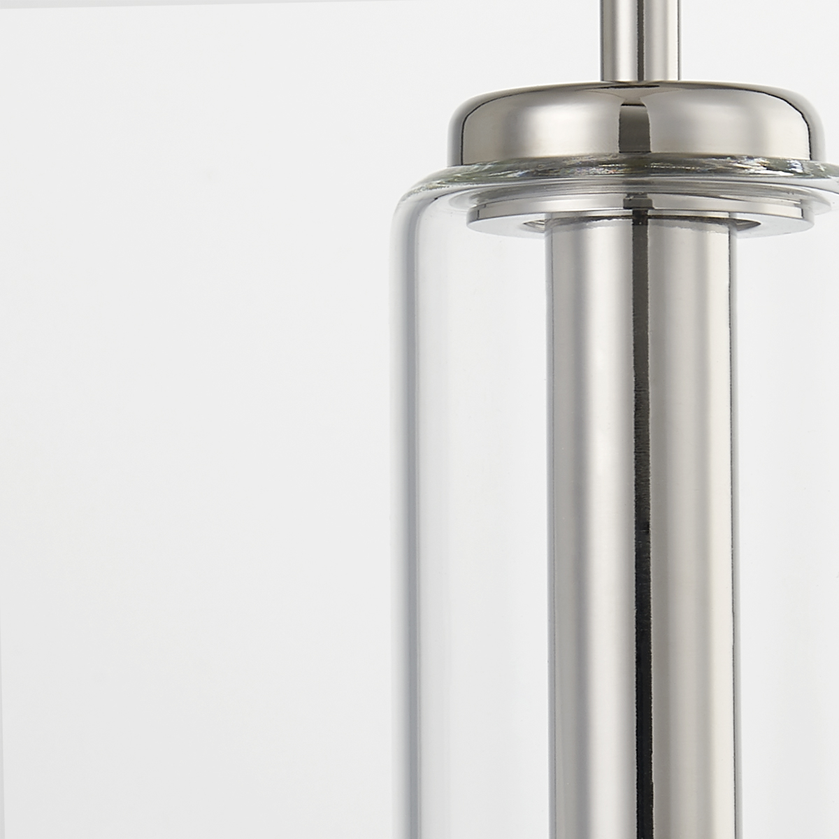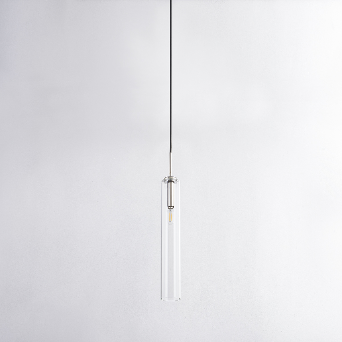 Streamlined in style, the Nyah Pendant delivers elevated proportions with an oversized glass shade. The aged bass socket is the perfect metallic accent, shining subtly in the tubular shade. Also available in a smaller size.