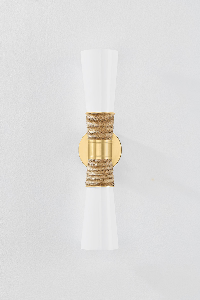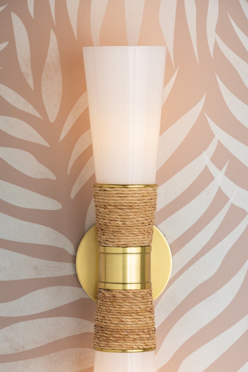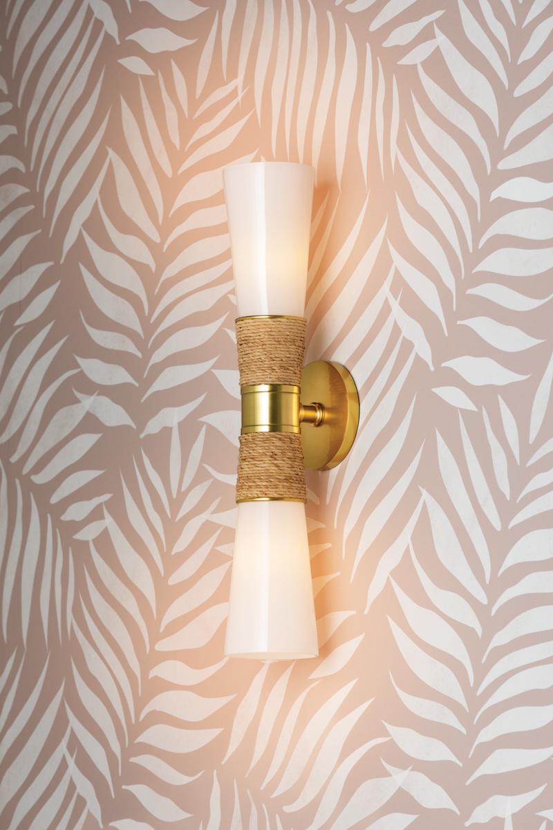 Balancing coastal charm with quiet luxury, Mica emits a gentle wash of light in kitchens and powder rooms. Its sleek silhouette is accented by wrapped raffia, an organic touch that makes this fixture feel approachable. Mica is available as a pendant in two sizes, or a wall sconce with one or two shades. Part of our Megan Molten x Mitzi Tastemakers collection.