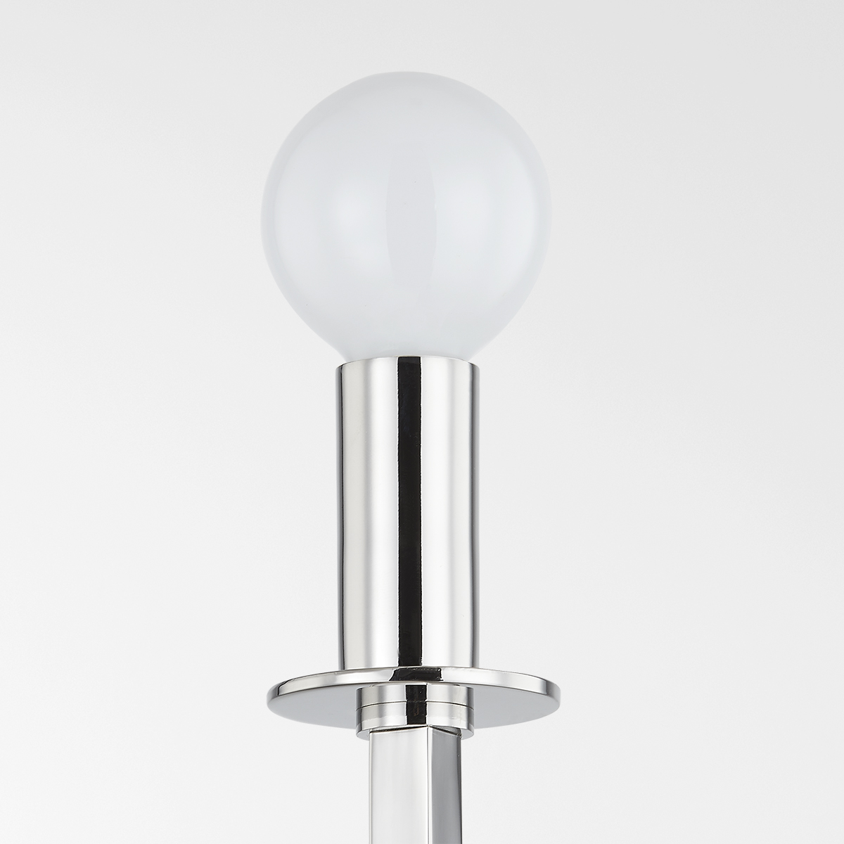 Milana takes proportion play to the next level, delivering a statement-making wall sconce with brilliant form. A square backplate and center arm are strong modern features, offsetting the rounded curves in the sockets and bulbs. Finished in aged brass, polished nickel, and old bronze.