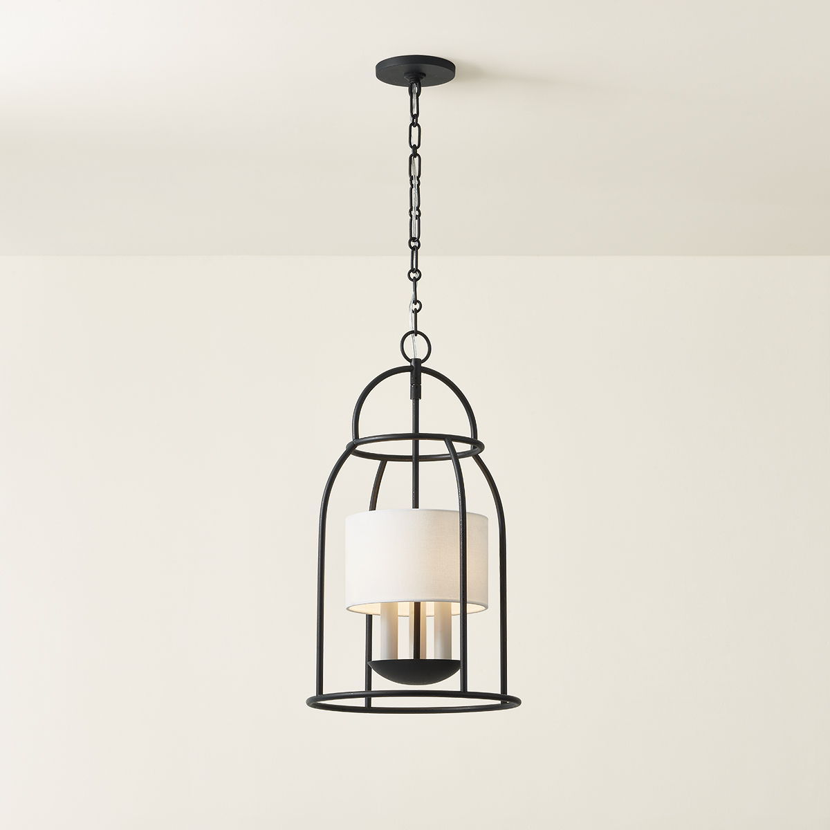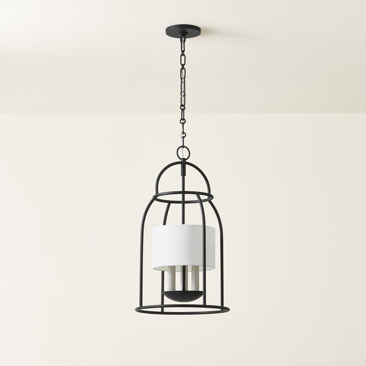 A contemporary twist on a timeless design tradition, Delia features a birdcage-like silhouette with gently rounded geometries. Available in either a three or four candle array, this piece provides a classic look, while the open framework of this airy lantern allows light to disperse evenly in all directions. The frame is available in two finishes; Aged Iron and Vintage Gold Leaf.