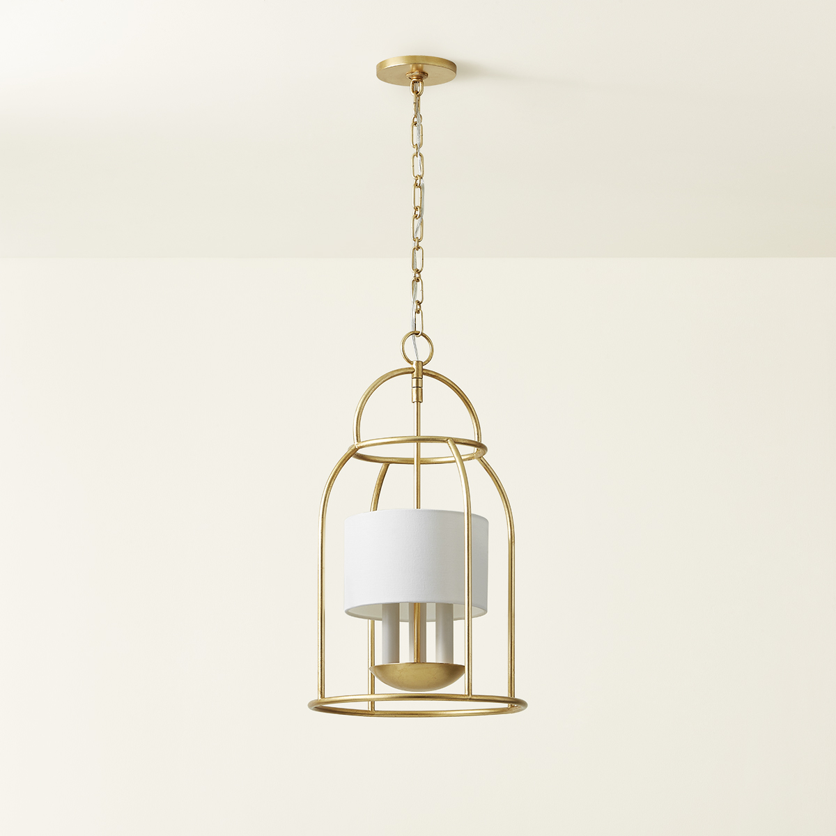 A contemporary twist on a timeless design tradition, Delia features a birdcage-like silhouette with gently rounded geometries. Available in either a three or four candle array, this piece provides a classic look, while the open framework of this airy lantern allows light to disperse evenly in all directions. The frame is available in two finishes; Aged Iron and Vintage Gold Leaf.