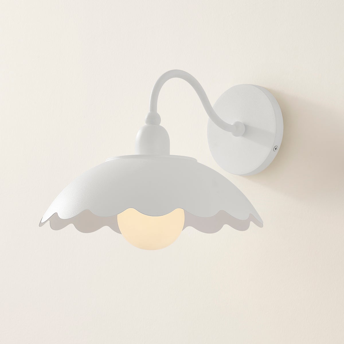 Graceful gooseneck arms curve like stems in support of the beautiful botanical forms of Yael. Each large dome shade features a scalloped edge. Small decorative spheres adorn the fixture like beads, complementing the sculptural linework of this family. Available as a sconce or a linear design, Yael makes a soft, fresh statement with its Textured White finish. Part of our Zoe Feldman collection.