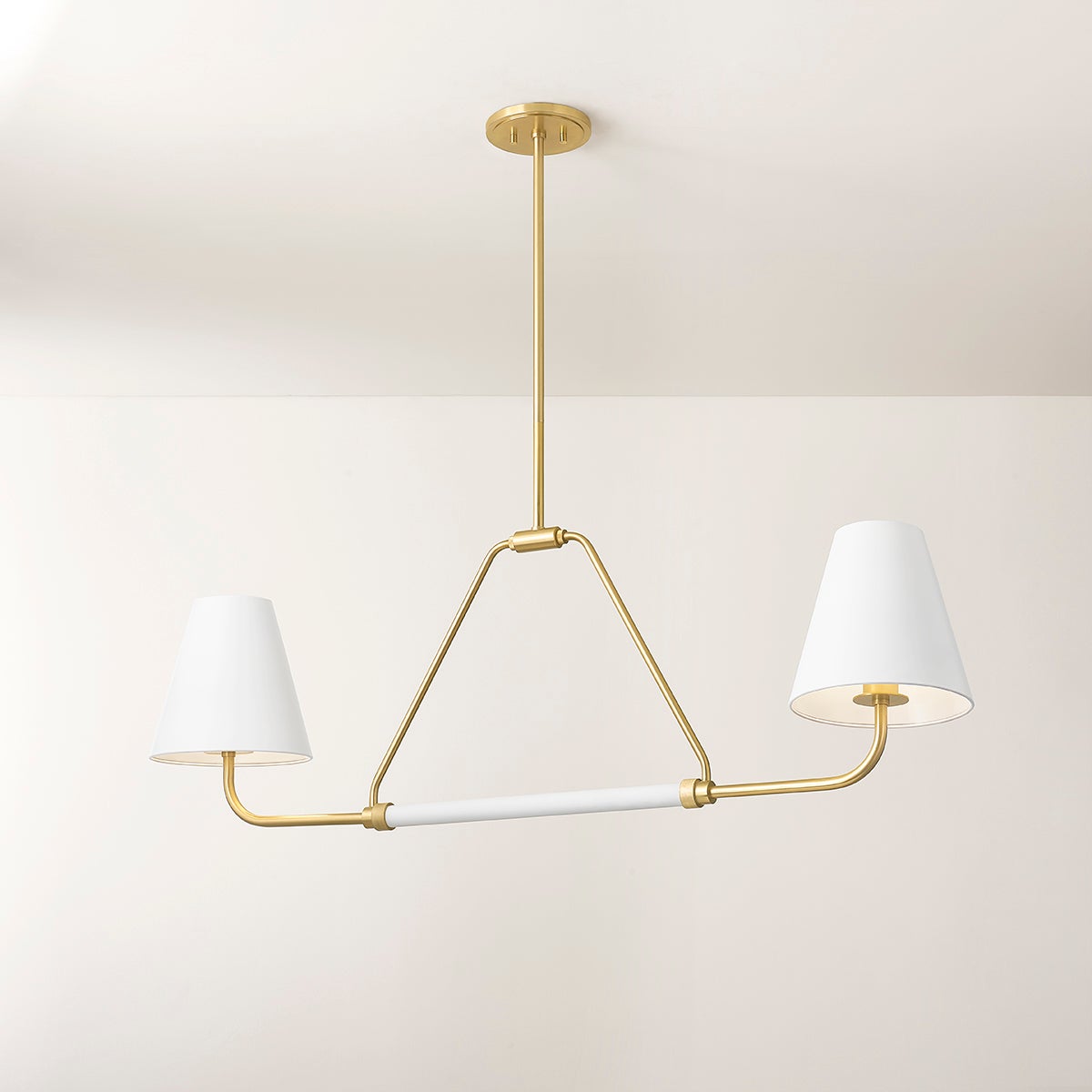 Leaning into traditional aesthetics, Georgann features clean lines and tapered shades with gently curved arms. Both its sconce and linear forms come with a Soft White and Aged Brass finish, providing a sense of classic beauty that melds with existing decor. As a floor lamp, it is finished in a moody green hue that adds a fresh dose of color to any room. Part of our Zoe Feldman collection.