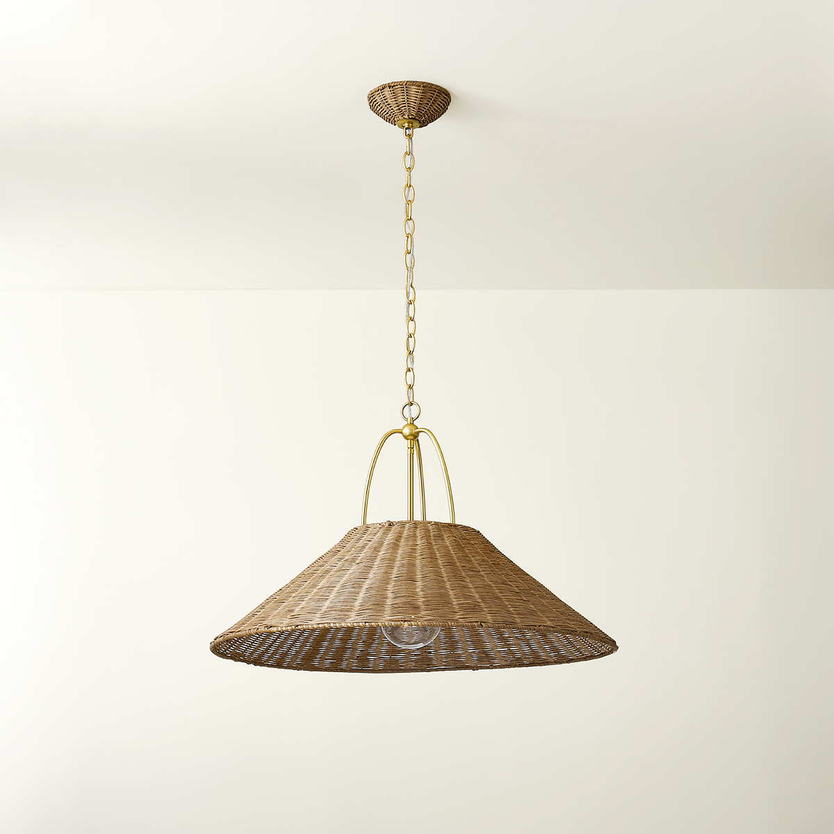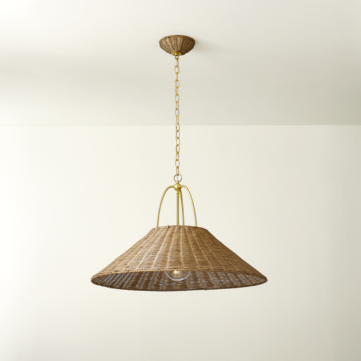 The Davida pendant takes a heritage silhouette and gives it an update with contemporary materiality. Woven from Natural Rattan, the shade and canopy bring an earthy, yet sophisticated feel to a space. The unique metalwork details are finished in a timeless Aged Brass finish. Part of our Zoe Feldman collection, Davida is available in two sizes.