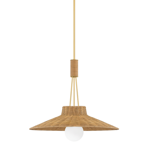Inspired by the movement of rippling water, the shapely silhouette of Mayla blends craftsmanship with a coastal touch. Light filters softly through the woven rattan wicker shade, which comes in two sizes. Suspended by an Aged Brass chain, this pendant makes for an eye-catching addition to living and dining rooms. Part of our Megan Molten x Mitzi Tastemakers collection.