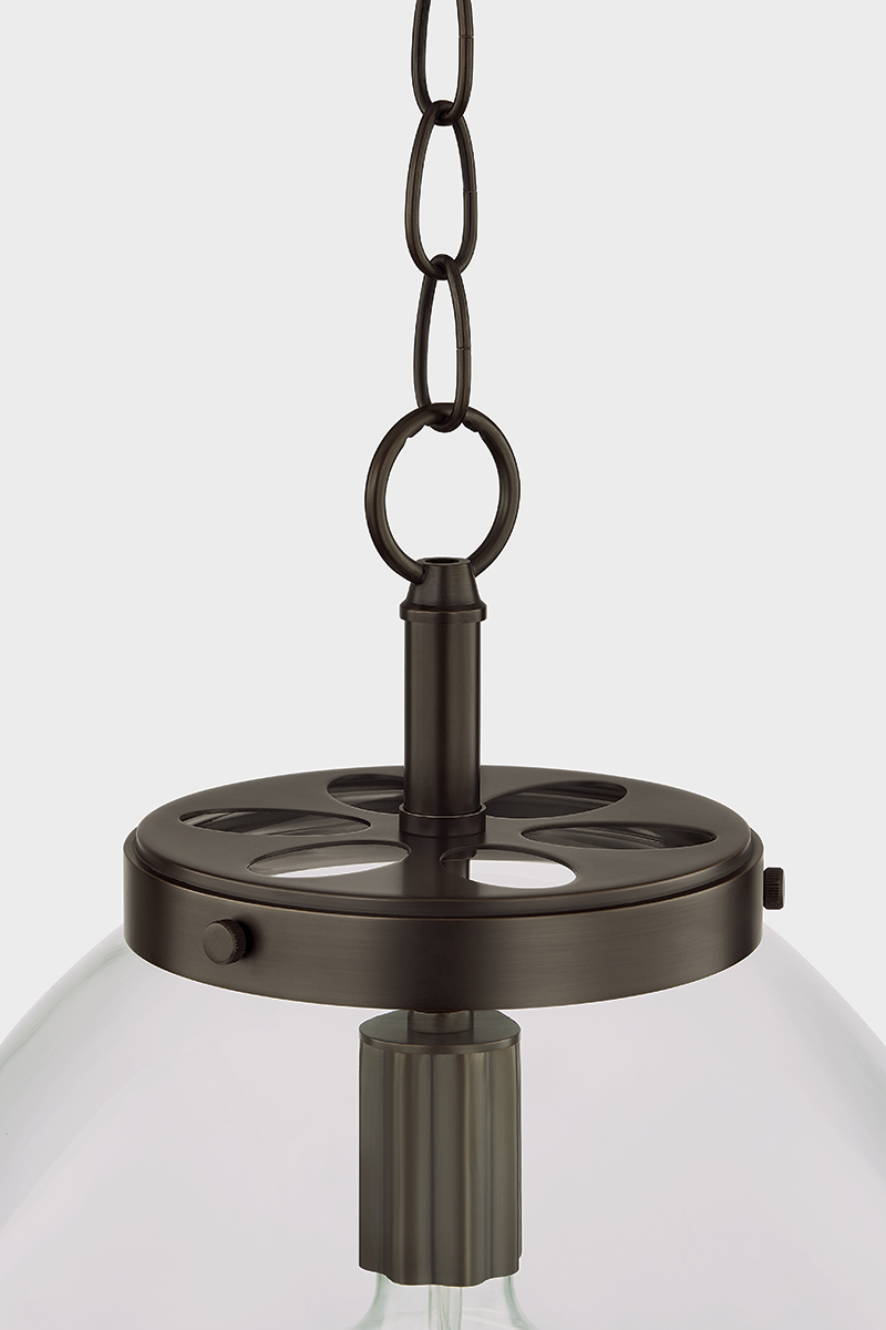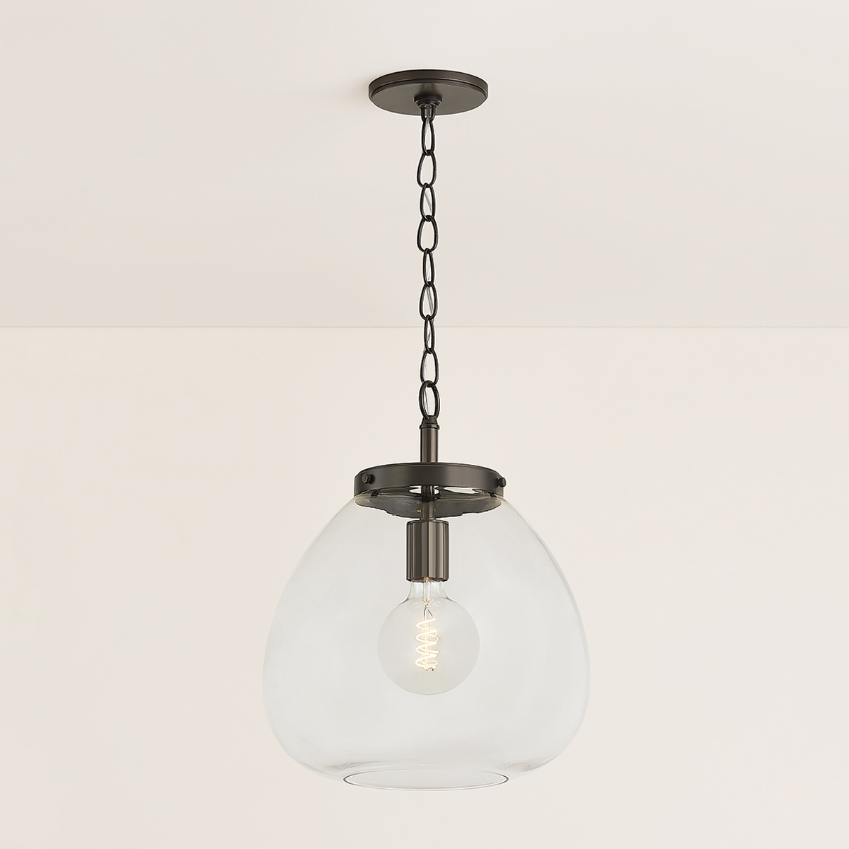 The Della pendant takes a simple shape and makes it special. When viewed from below, the gently curved clear glass shade provides a view of the botanical metalwork within. The organic form of the shade nods to nature, as does the floral cut-out detail on the socket cup and fitter. Finished in either Aged Brass or True Bronze, Della is a crowd-pleaser in kitchens and dining rooms.