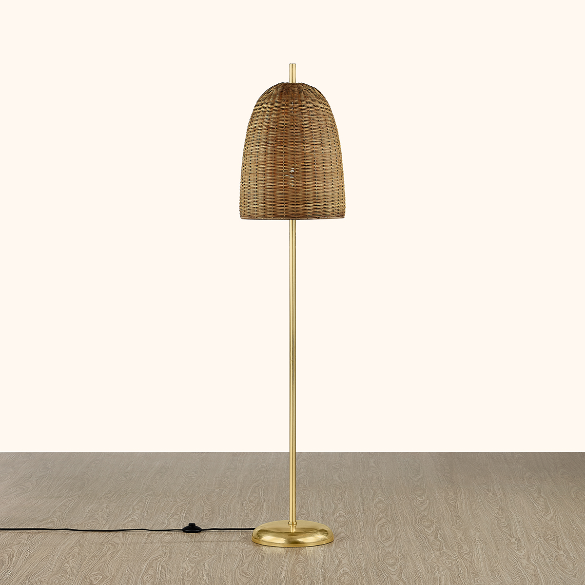 Pulling reference from traditional basketry, Beatrice features an oversized yet slender wicker shade paired with a simplified Aged Brass base. The intricate weaving diffuses light for a soft, ambient glow, while the reflective metal adds a touch of luxurious shine. This fresh accent piece is ideal for layering in a living room or bedroom.