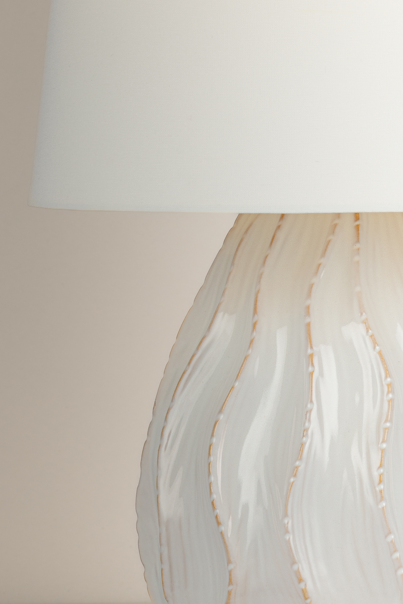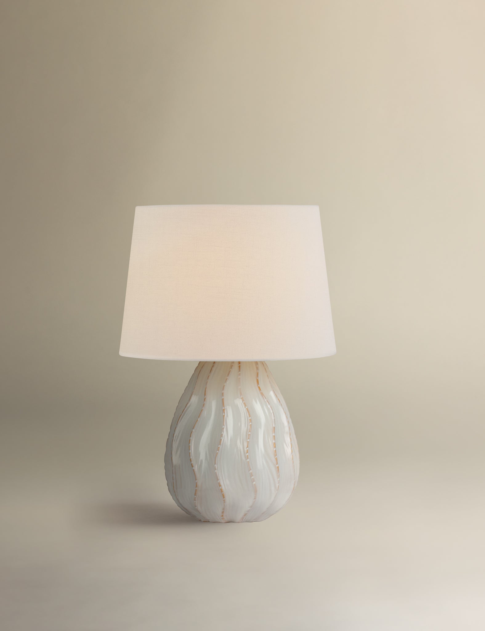 Whimsical yet elevated, the Karla table lamp takes inspiration from the shapes and movement of marine coral. The artful silhouette features a muted pastel palette with flowing, raised edges highlighting the natural, earthy hue of the ceramic. It’s a sculptural statement worthy of being showcased on a console or dresser.