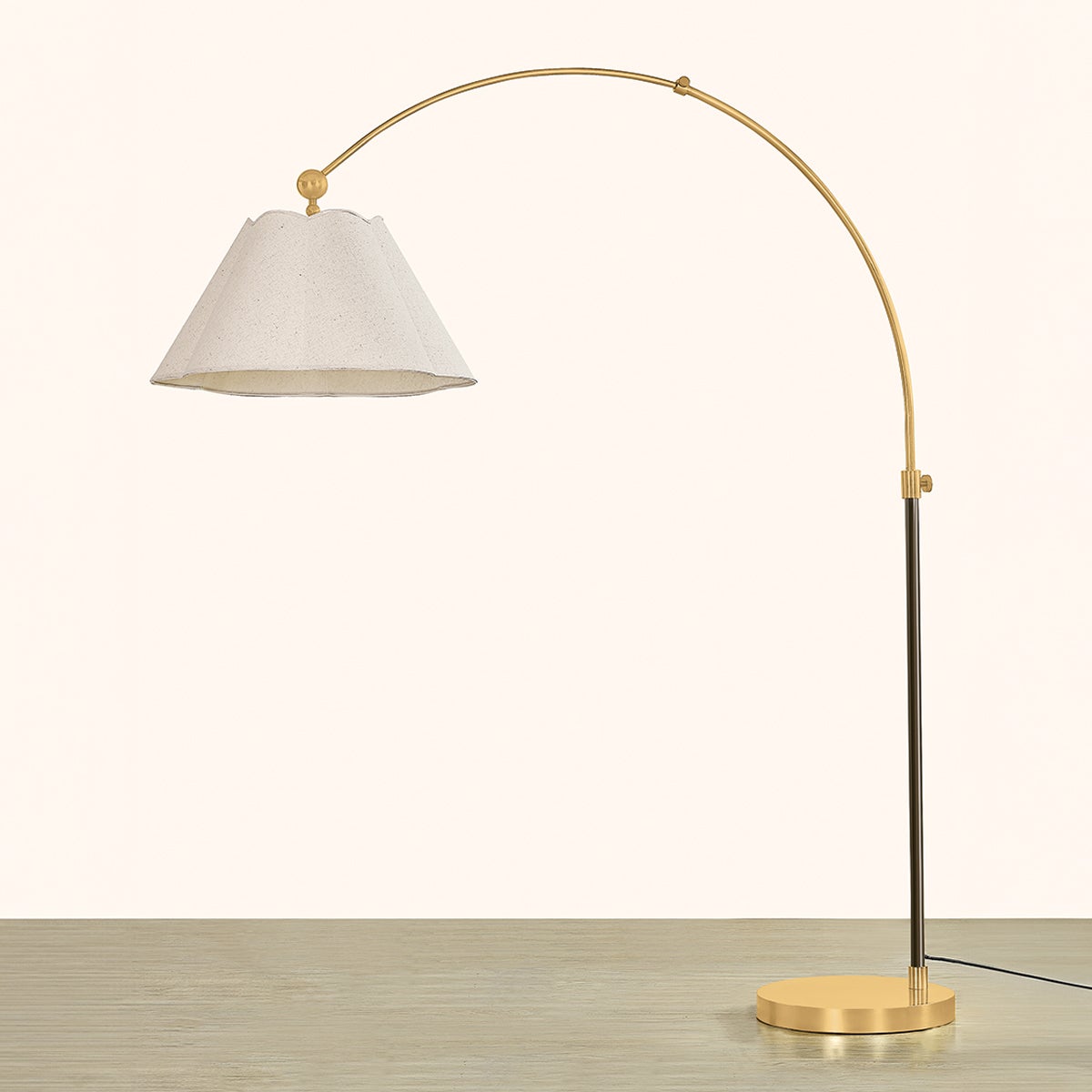The Janie family updates a traditional framework with contemporary silhouettes and an unexpected mix of materials, making it ideal for both classic and modern spaces. Scalloped shades cast a softly diffused light, creating a subtle, curved shadow. The contrasting True Bronze sleeve against the Aged Brass frame accentuates Janie’s fresh, re-imagined form. Designed to be layered together, these fixtures are designed in honor of Mandy’s beloved family of in-laws.