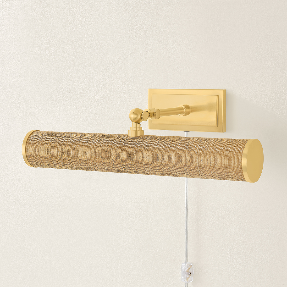 Whether you want to bring more attention to artwork or highlight a wall shelf of your favorite things, Holly is up to the task. This plug-in picture light now comes in an Aged Brass or Natural Grasscloth finish to create a more traditional or distinctive look. Available in three sizes, Holly’s style-forward design and versatility make it perfect for any space needing focused light.