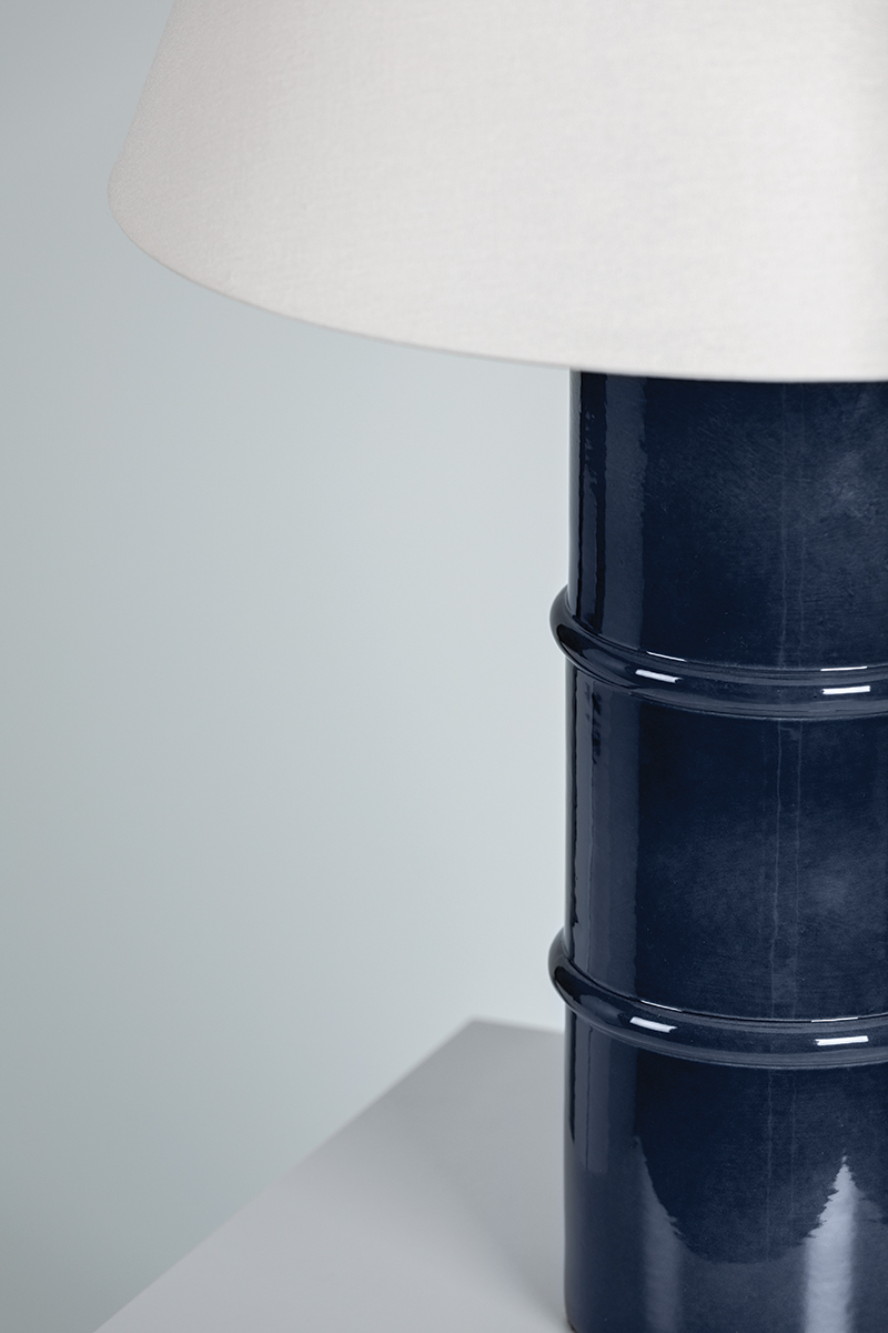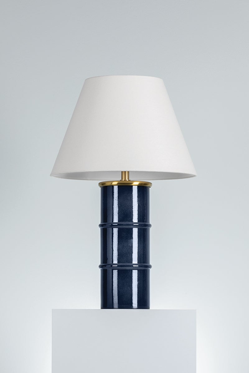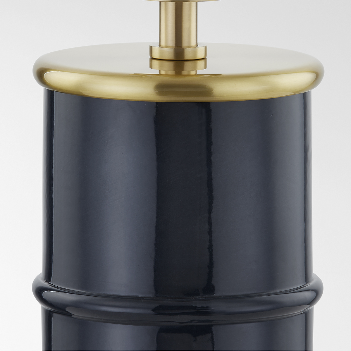 Natural appeal abounds with this abstracted bamboo design that is reminiscent of Henry Link Bali Hai furniture. Add organic style to the wall or ceiling with the sconce or chandelier, both available in a black or white finish to flow with any color scheme. The lamp's dark navy ceramic base adds color and drama to tabletops without overpowering the space. Part of our Ariel Okin x Mitzi Tastemakers collection.