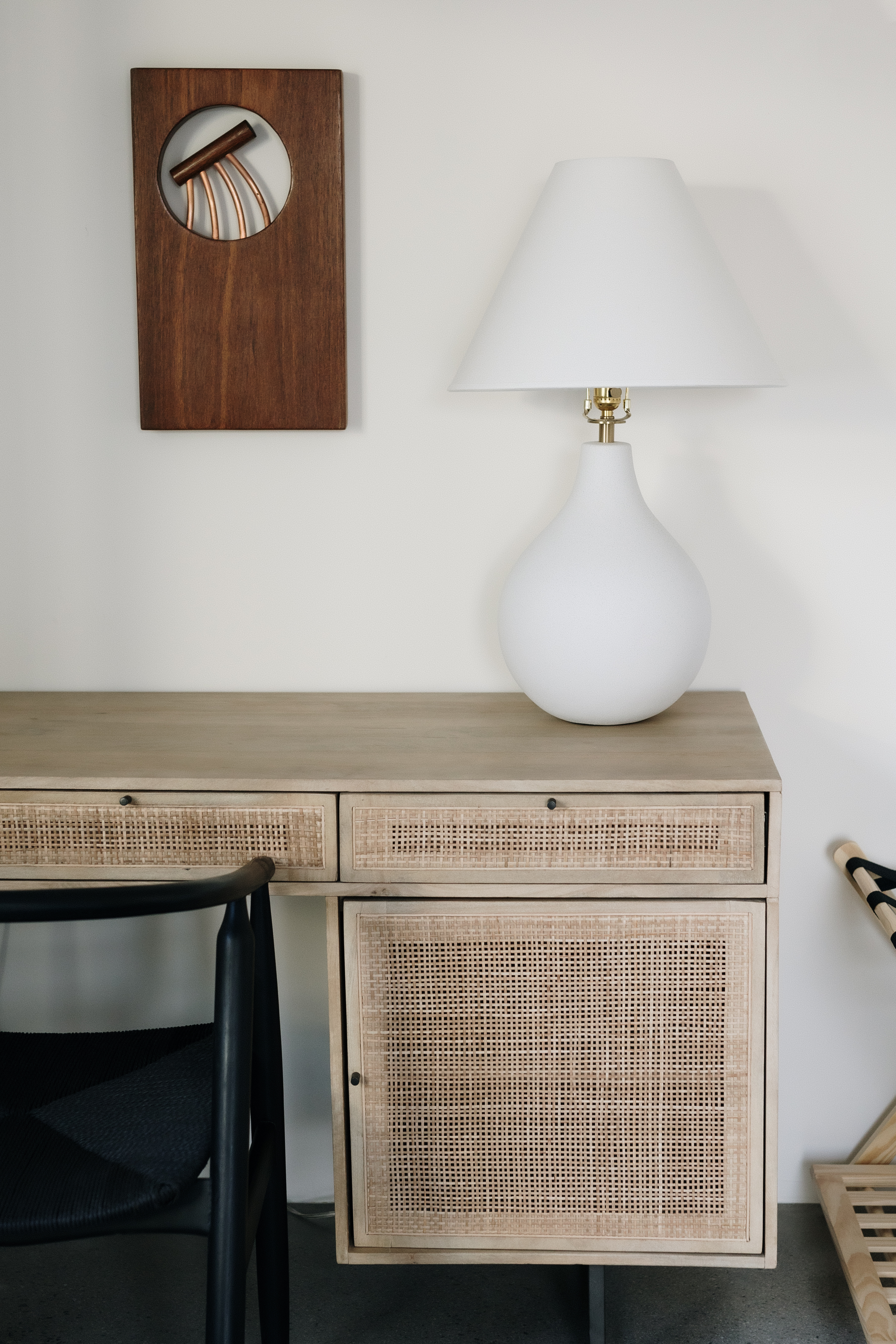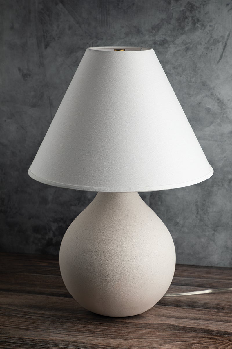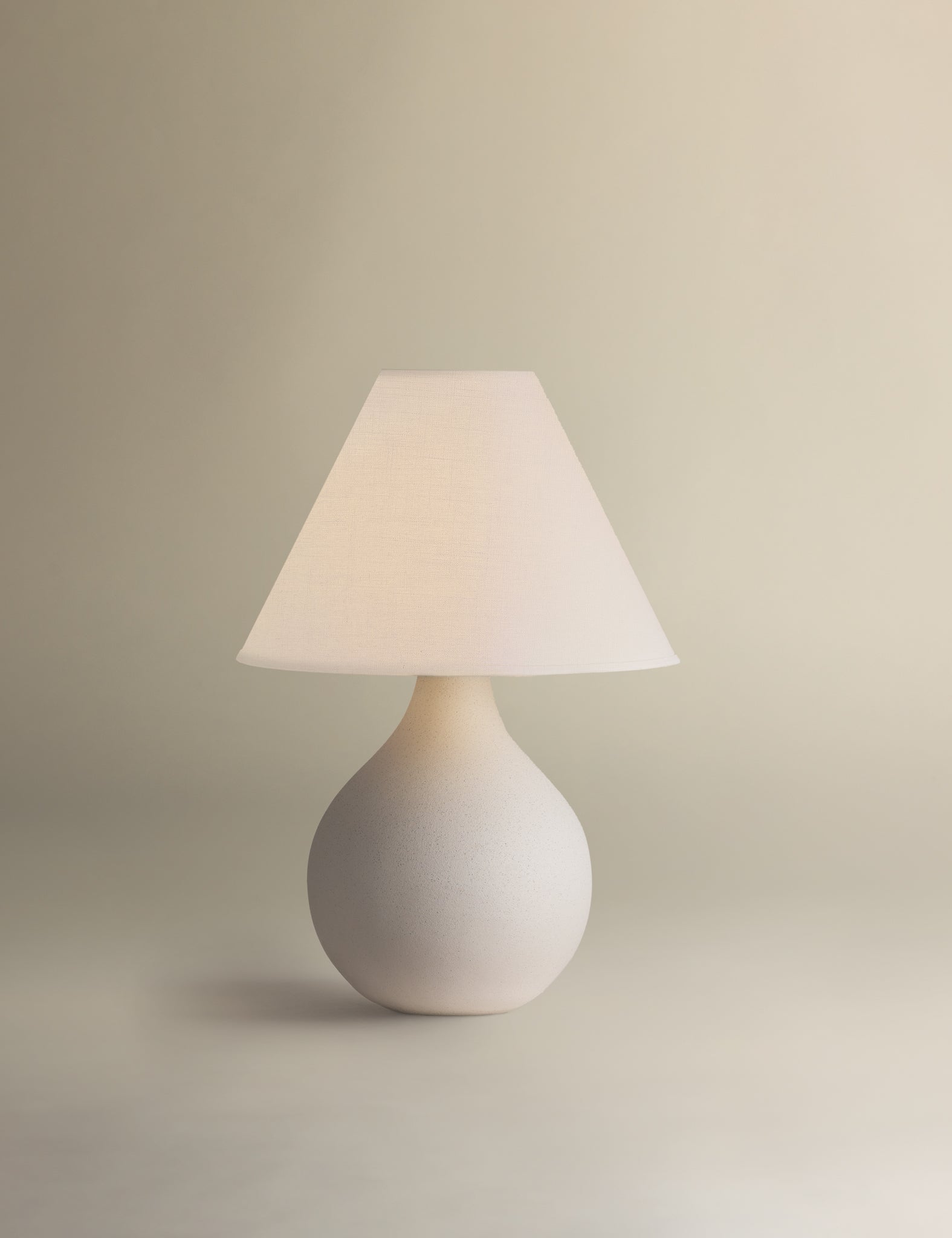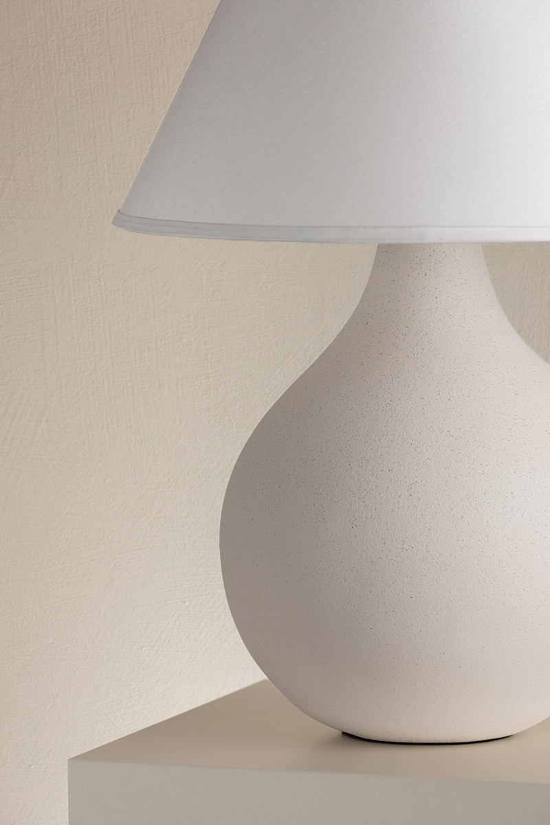 Helena ushers in an era of 'new neutrals'. From the pear-like silhouette to the classic tapered shade, Helena masters simplistic beauty while maintaining a certain design edge. The matte white ceramic form features the faintest black speckle, adding organic texture to the piece.