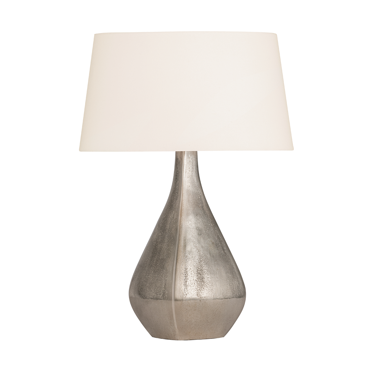 The Fieldston table lamp is cool and collected with generous curves and a subtle shine. A Warm Silver finish over durable cast aluminum catches and reflects light across the base, enhanced by the faceted edges and textural grain. Topped with a large white linen drum shade, Fieldston’s artistic flair makes it a dream accent piece for a side table or console.