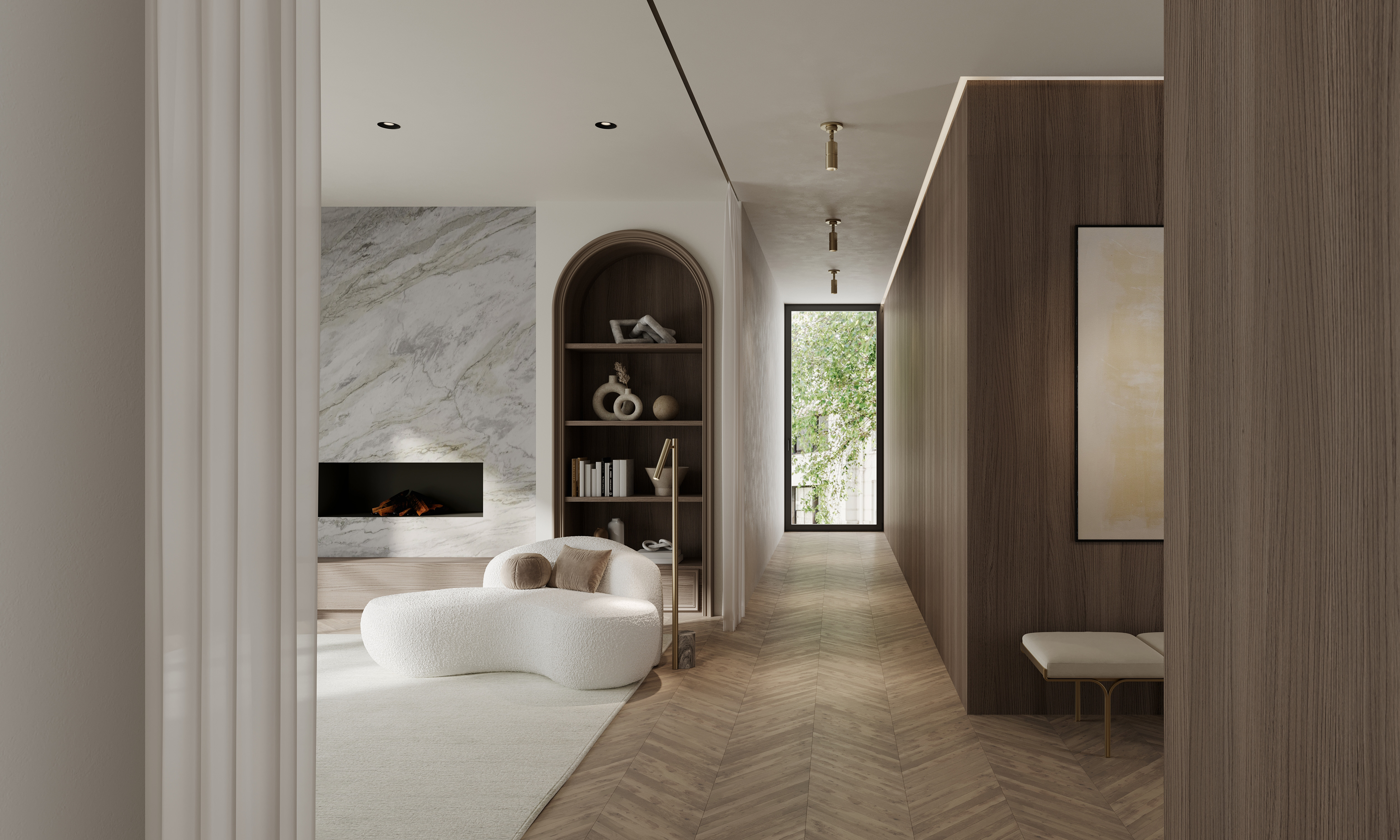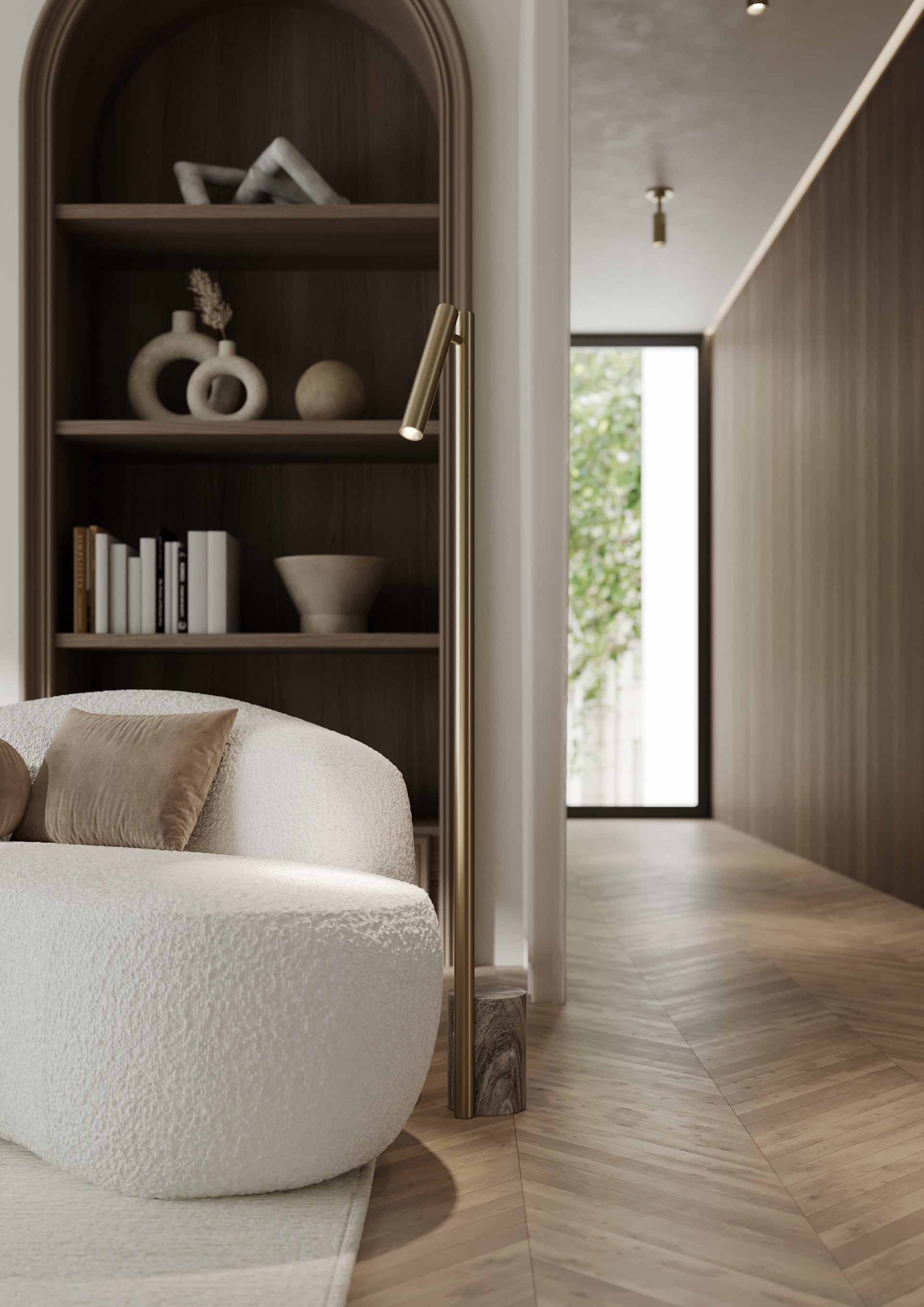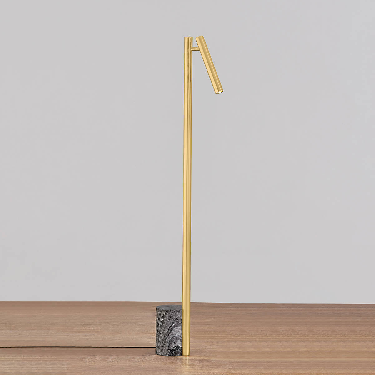 Incorporating CSL’s innovative ‘Whisper’ technology, Circleville cuts a sleek figure in Aged Brass. While it might read as industrial, the elongated tube forms lean towards modernist aesthetics. The articulating shade allows precise control to create a powerful spotlight where needed. Available as a sconce and floor lamp.