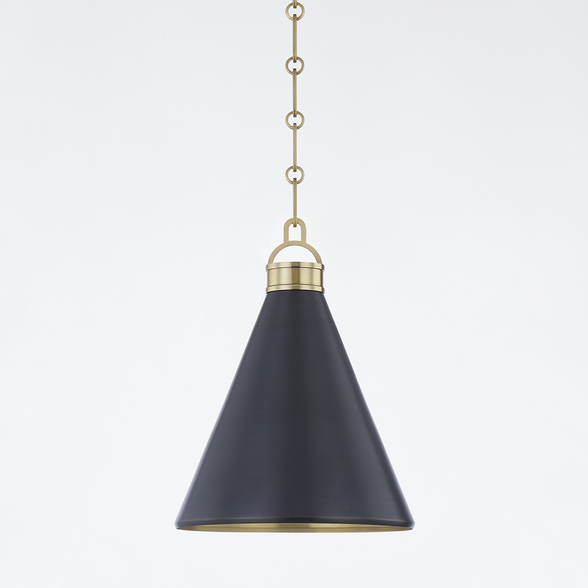 Osterley's simple, yet striking cone silhouette makes it both elegant and useable. The shade's Aged Brass inside contrasts beautifully with the Distressed Bronze outside. Hang the pendant in multiples over kitchen islands, dining tables and down hallways, or use alone to light a smaller space. Both sconces articulate making them ideal bedside or in a cozy reading nook. Part of our Mark D. Sikes collection.