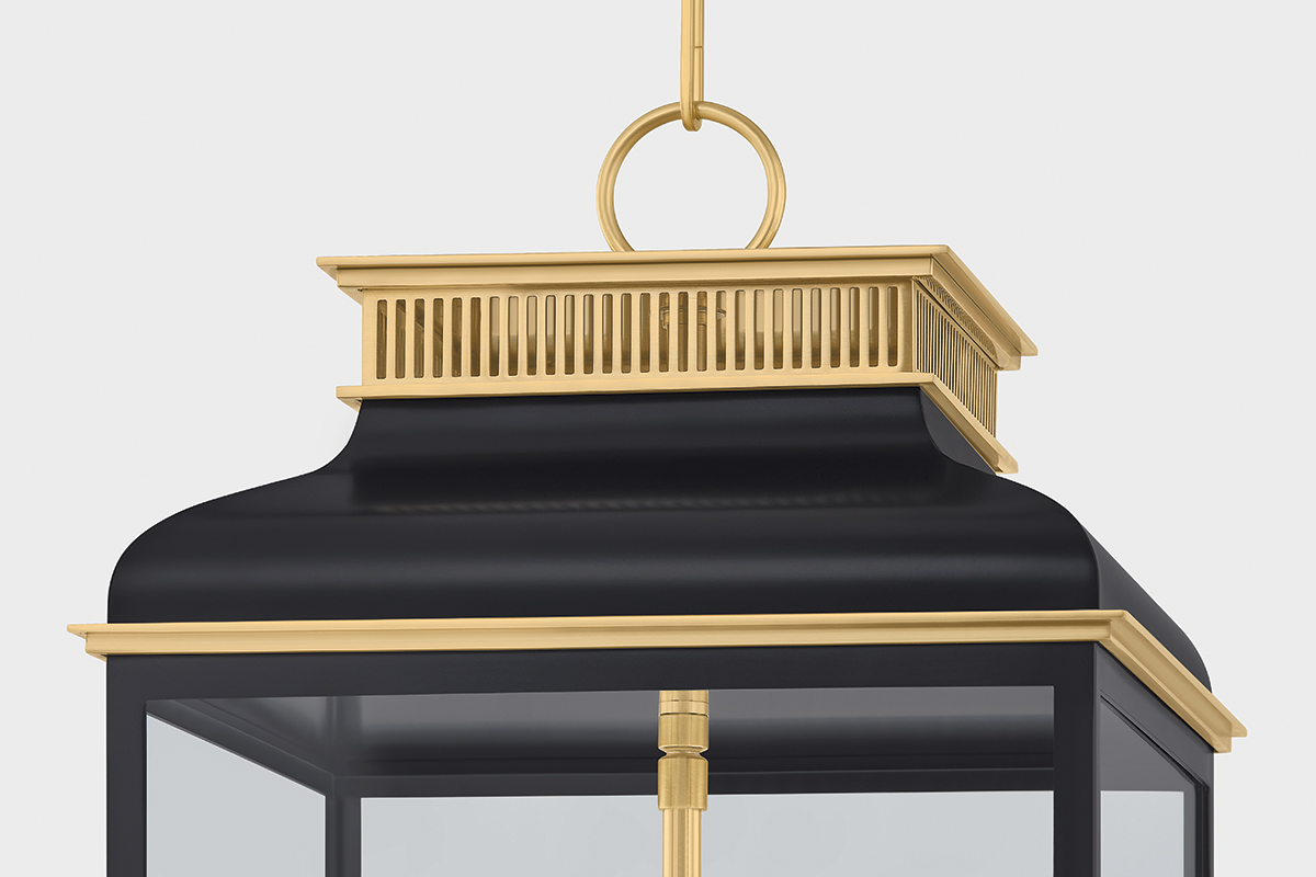 Blending traditional lines with fresh, mixed finishes, the Houghton lantern family exudes timeless elegance. Notable details include Mark D. Sikes’ signature ball accent at the center of the candelabra and perforations on the shades. Complemented by warm Aged Brass accents, the classic silhouette ensures Houghton fits into any interior space with ease. Houghton is available in two sizes with a choice of Darkest Blue or Off White finishes.