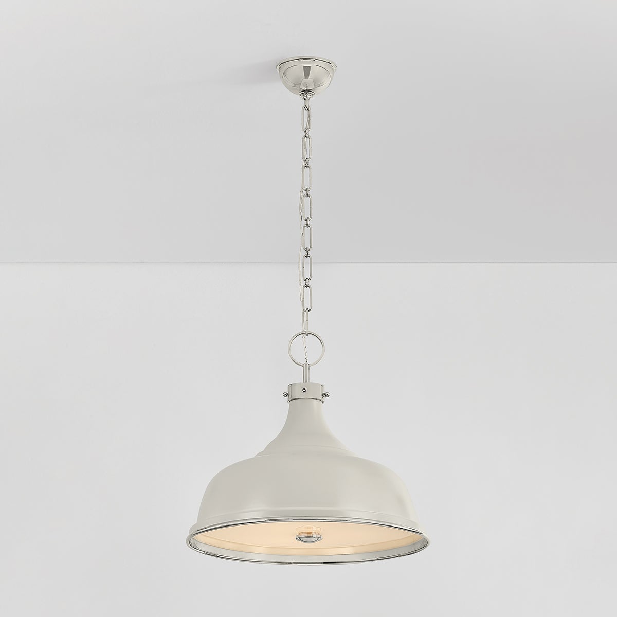 Simple, easy, and approachable, the tried-and-true Painted No.1 pendant light is now available in even more beautiful color and finish combinations. The classic hues have a timeless appeal, each giving the curved shade a different feel. This versatile pendant light comes in a 3-light design with an Aged Brass and Soft Studio Green finish or Polished Nickel and Soft French Blue finish. The 4-light design is also available in these finishes, as well as Aged Brass and Darkest Blue; Polished Nickel and Off-White; and Aged Brass and Off-White.