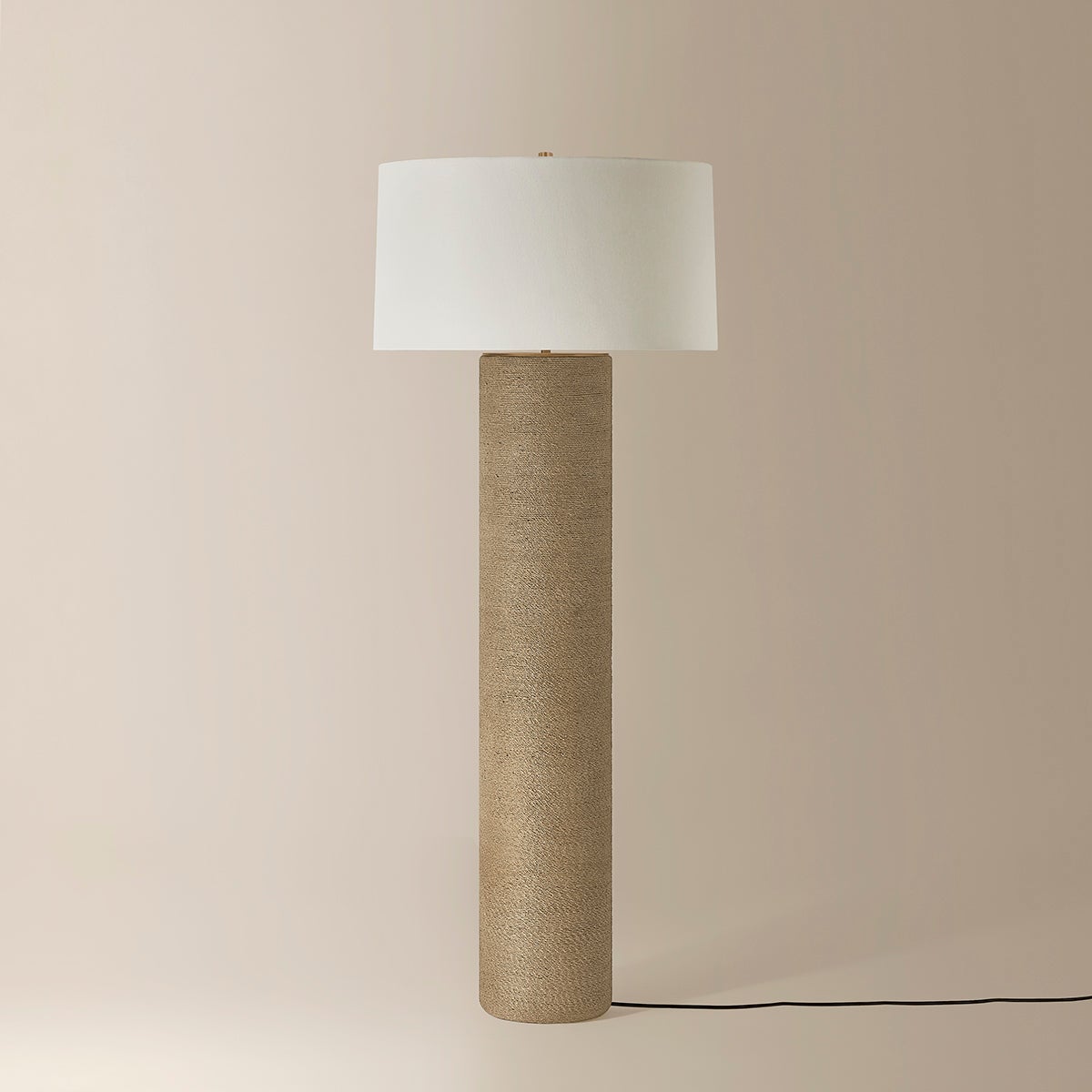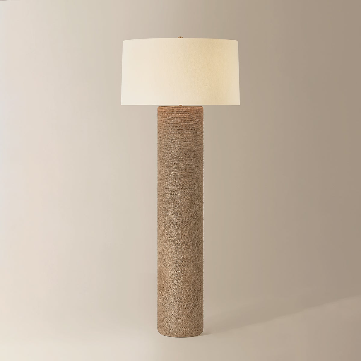 Like a tree trunk reaching for the sky, Roan is statuesque and statement-making. Each lamp features a cylindrical base wrapped in bleached jute rope, showcasing the beauty of the fiber’s weave. An off-white linen drum shade lends a softness to the design, accented by Patina Brass hardware. Available as a table and floor lamp, Roan brings a touch of nature indoors.