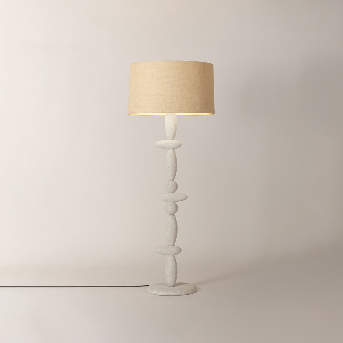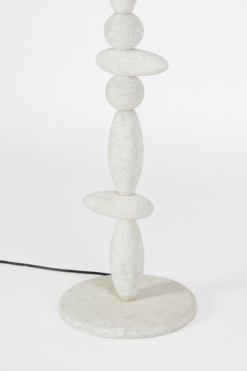 Based on a sketch by Chandler McLellan, the Cullen family explores silhouettes inspired by the beauty of Scottish dry stone construction. The dry stone technique appears rugged, yet it requires a precise understanding of balance. To give the Cullen floor lamp this sense of organic tension, some of the ‘stones’ are intentionally placed off-center. The elongated totemic profile of the sconce is framed by a metal circular backplate, adding an element of contrast to the monolithic design. Part of our Chandler McLellan collection.