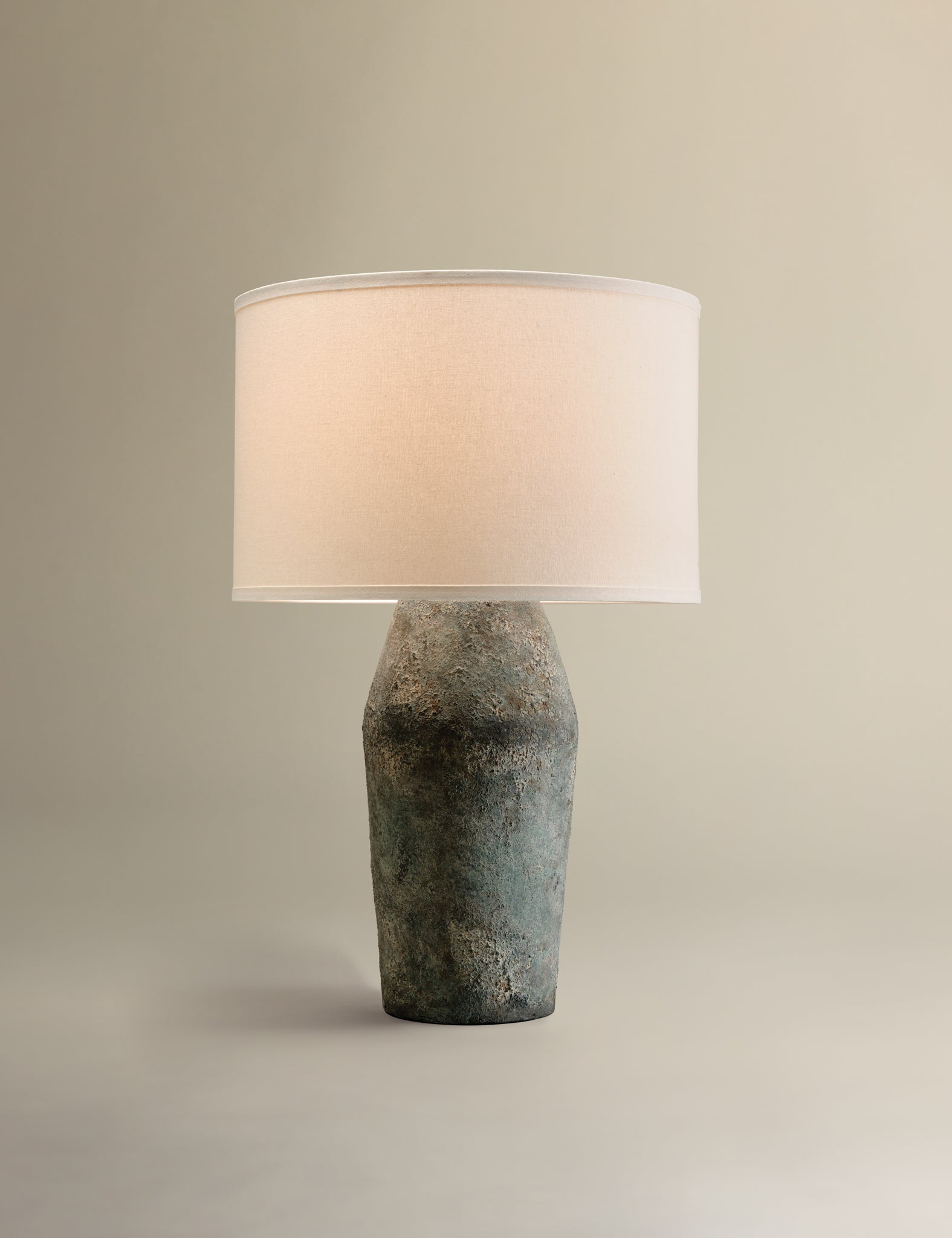 The aptly named Artifact collection presents lamps with shapely, textural abstract forms and complementing shades of fine fabric. Its Moonstone and Graystone finishes give it an earthy vibe, like something exhumed.