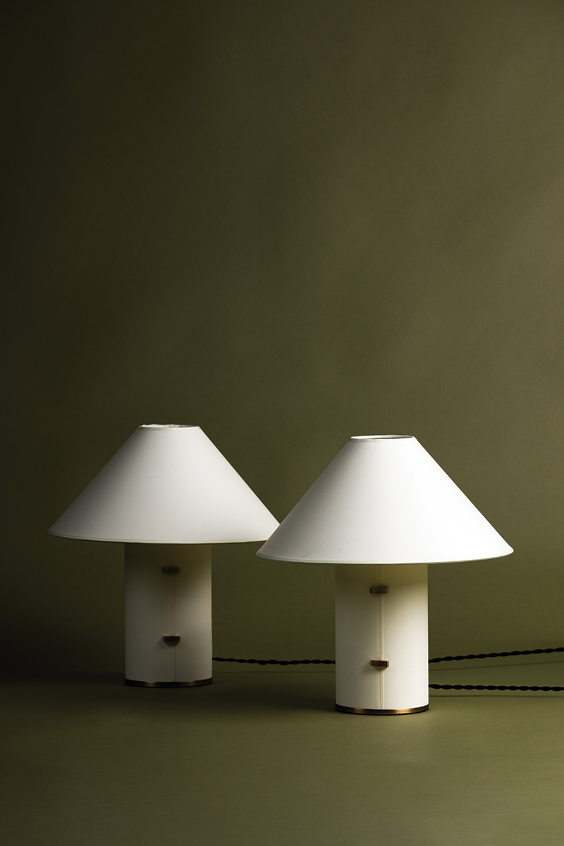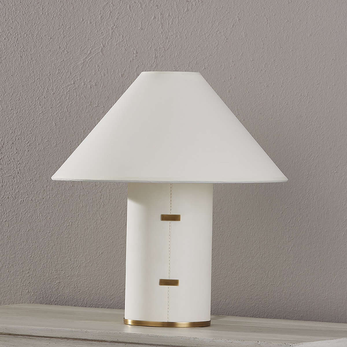 Characterized by its parchment-wrapped body, stitch detailing, and clasp-like Patina Brass accents, Bond is both relaxed and refined. Light filters through the tapered parchment shade, creating a warm, ambient glow that adds to the design's natural, organic feel. Bond is available in two sizes, delivering a clean, elevated aesthetic to a variety of spaces.