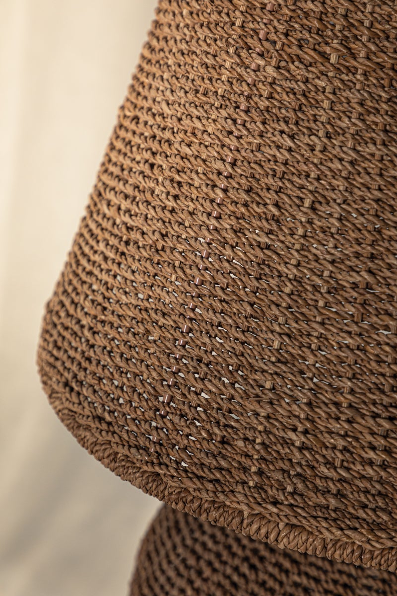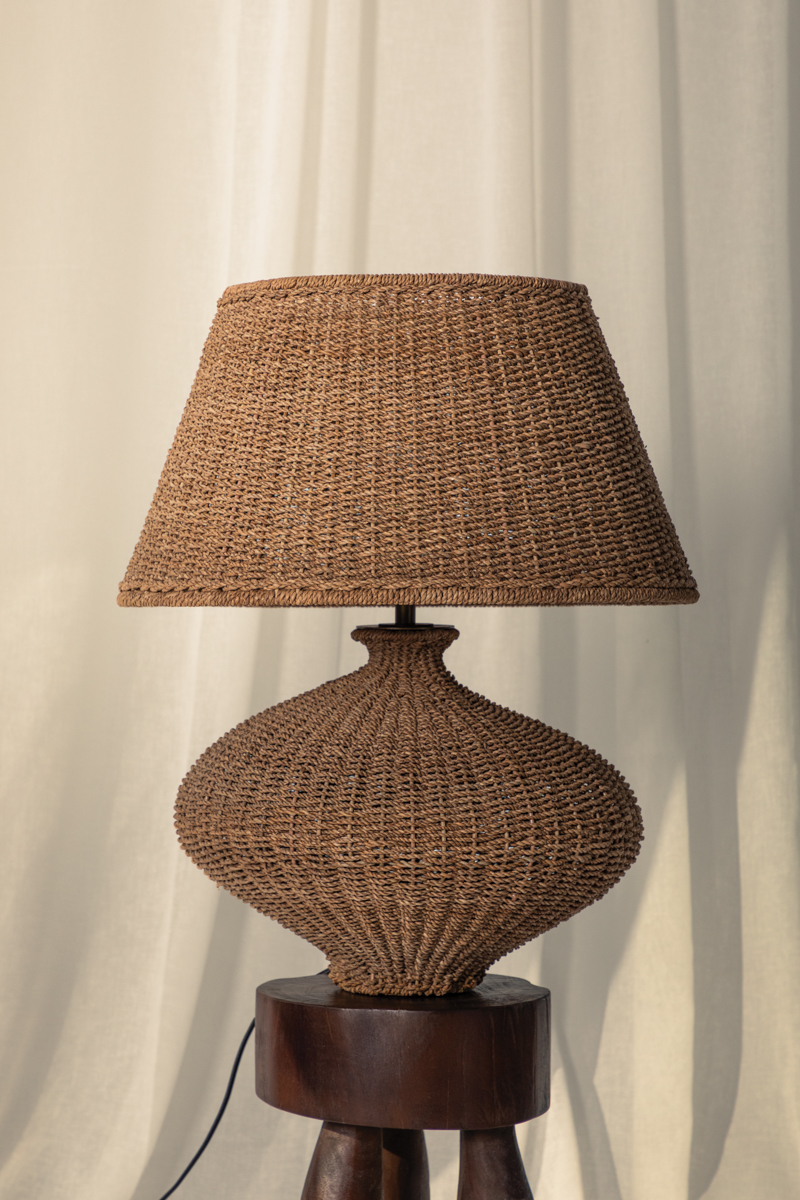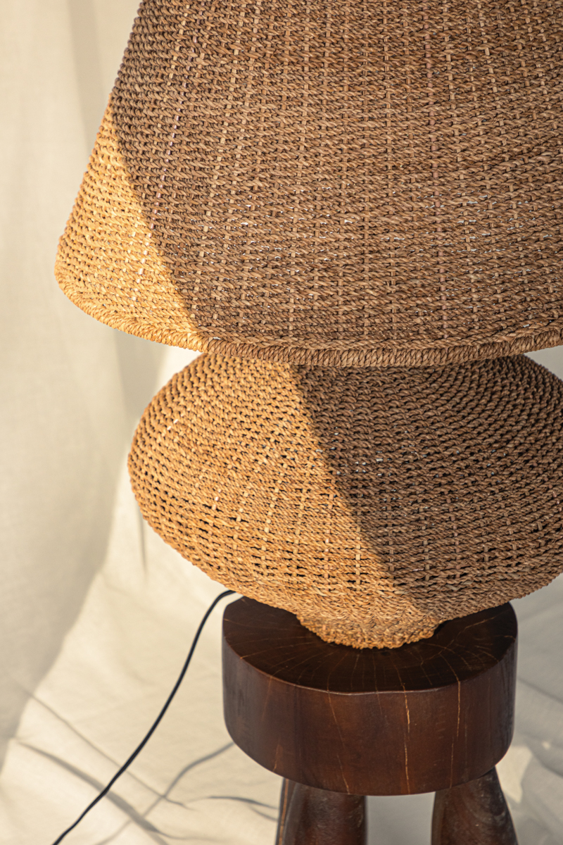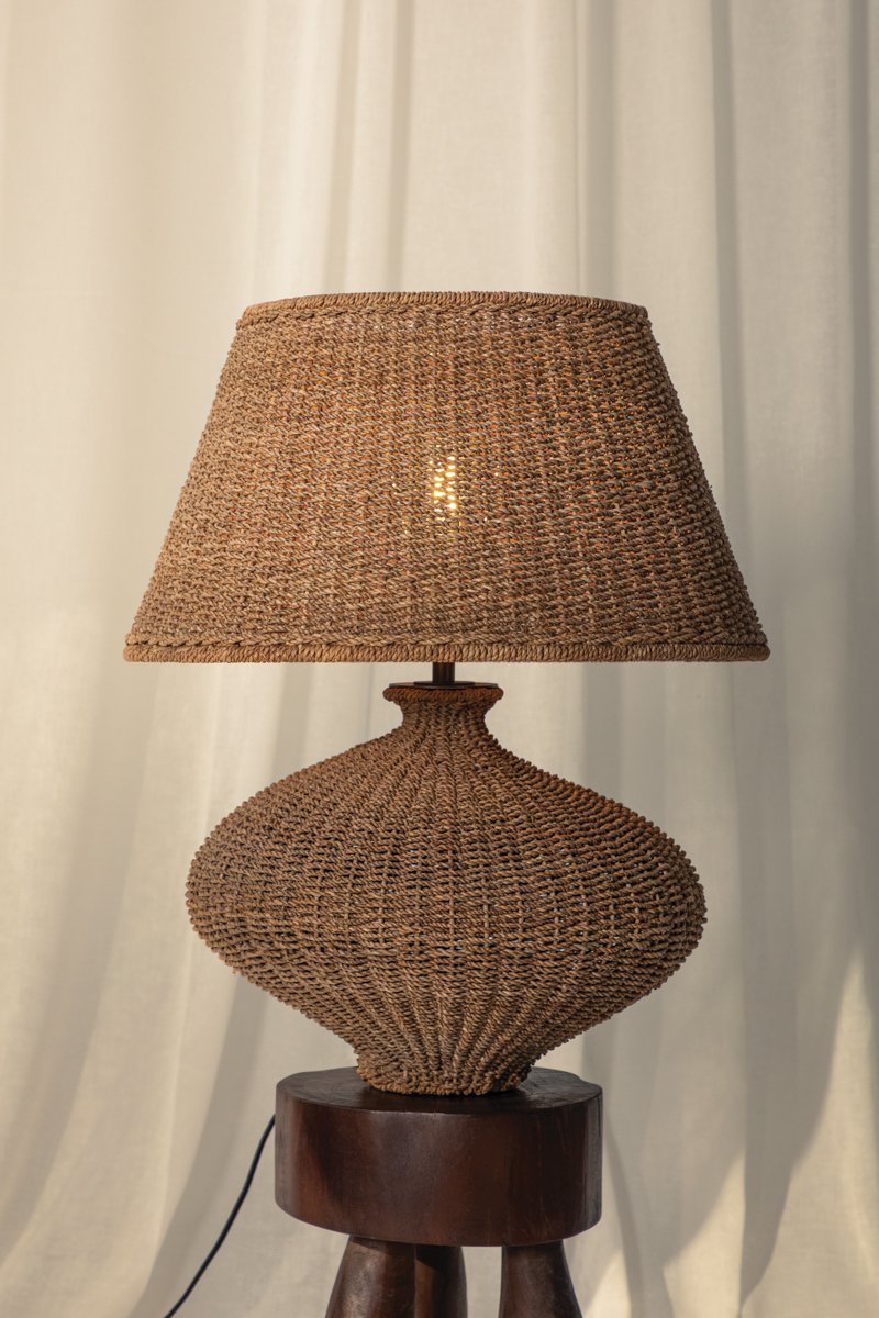 Celebrating the beauty of imperfection, the sculptural Nette lamp features an asymmetrical body and tapered shade in all-over natural woven Abaca. The shapely silhouette gives Nette a rustic presence, while the Patina Brass finish adds to the warm aura surrounding the piece. Place Nette on a console, desk, or end table for an instant dose of artistry. Part of our Loft and Thought collection.