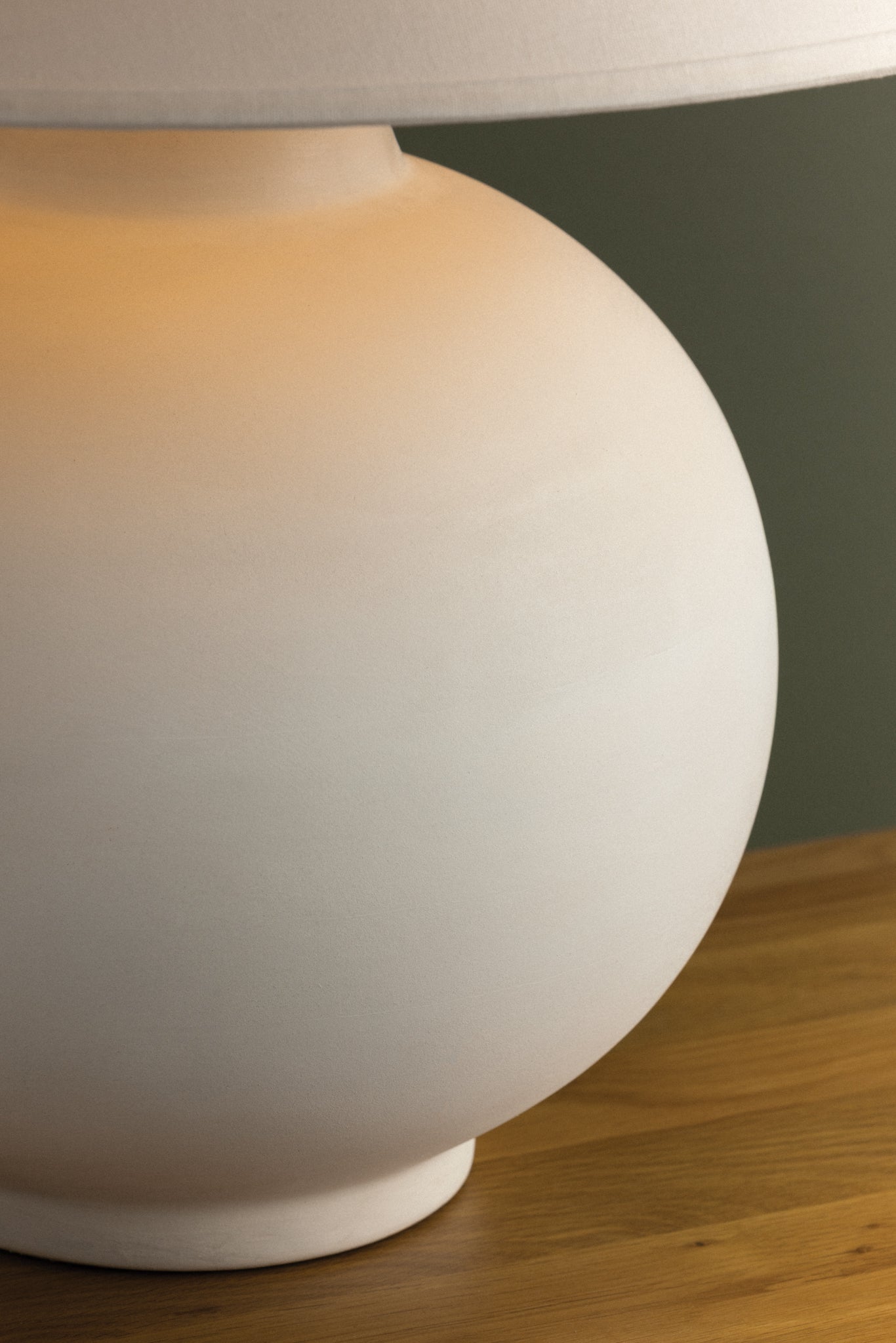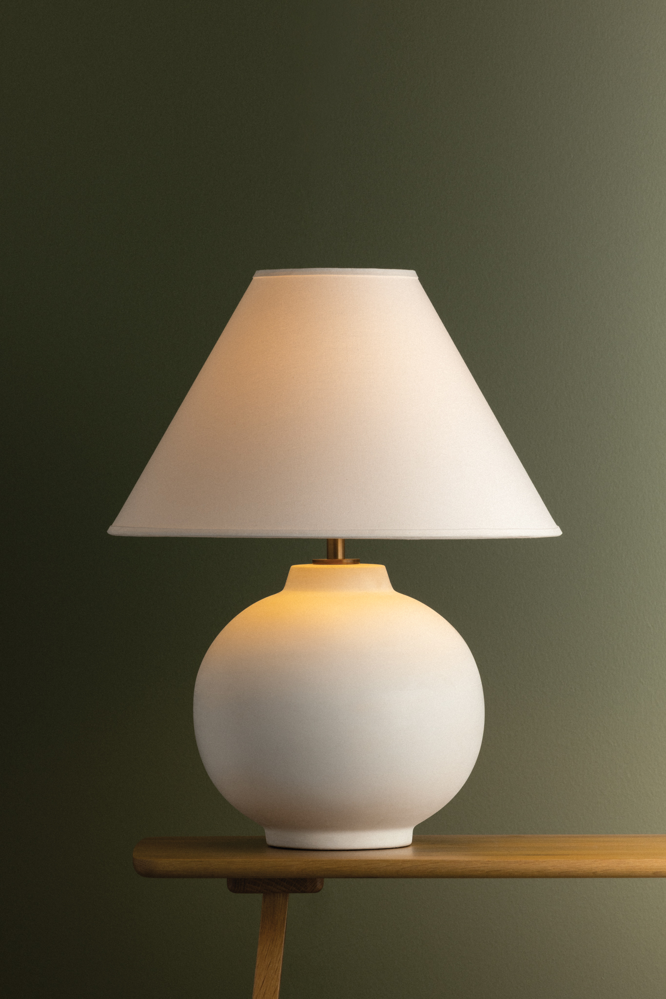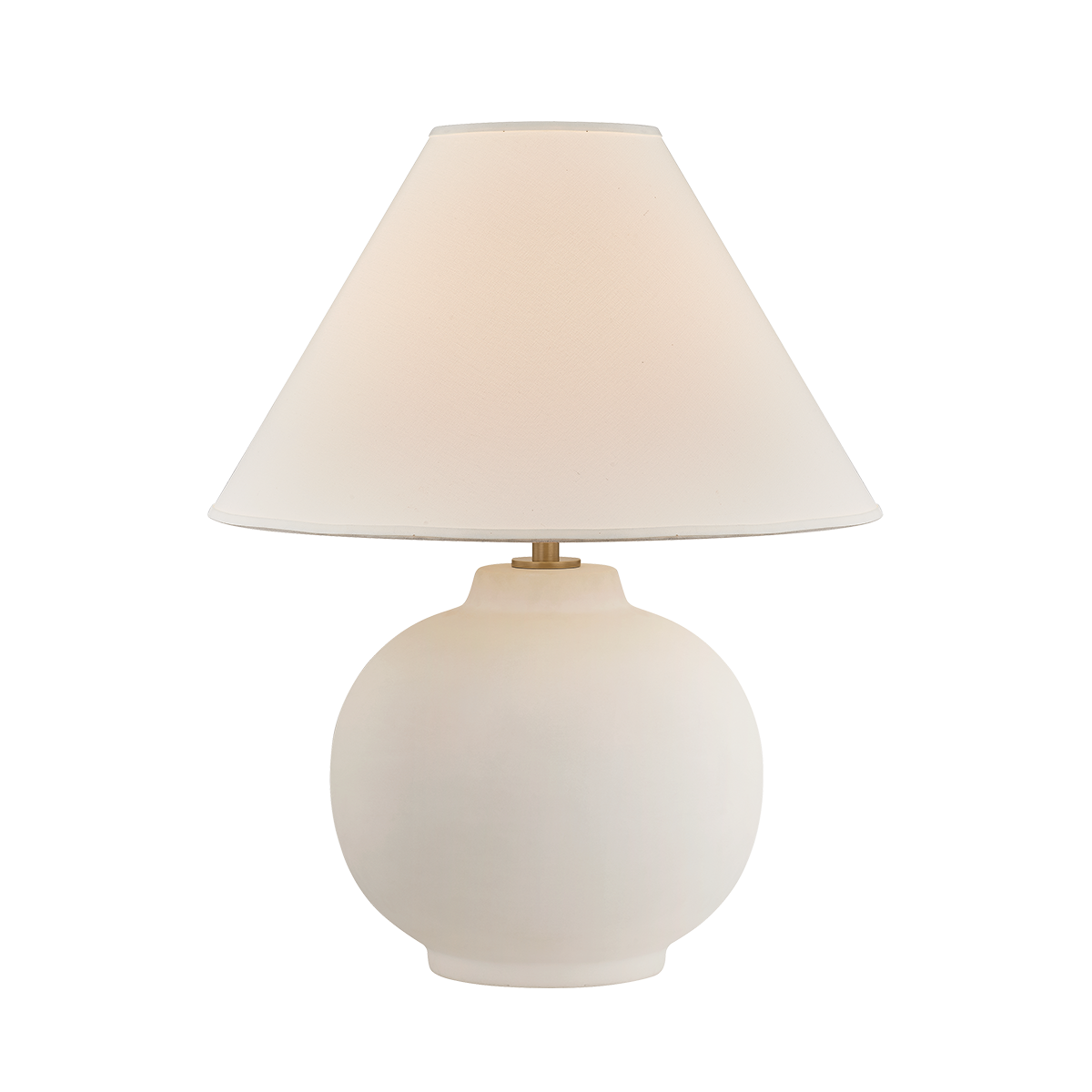 Schubert embraces simplicity through a pure form and tactile materiality. Finished in a soft Sugar Cookie glaze, the rounded ceramic base is artfully easy on the eyes. A white linen drum shade with self-trim completes the neutral composition. Finished with Patina Brass, Schubert lends a serene presence to any interior.