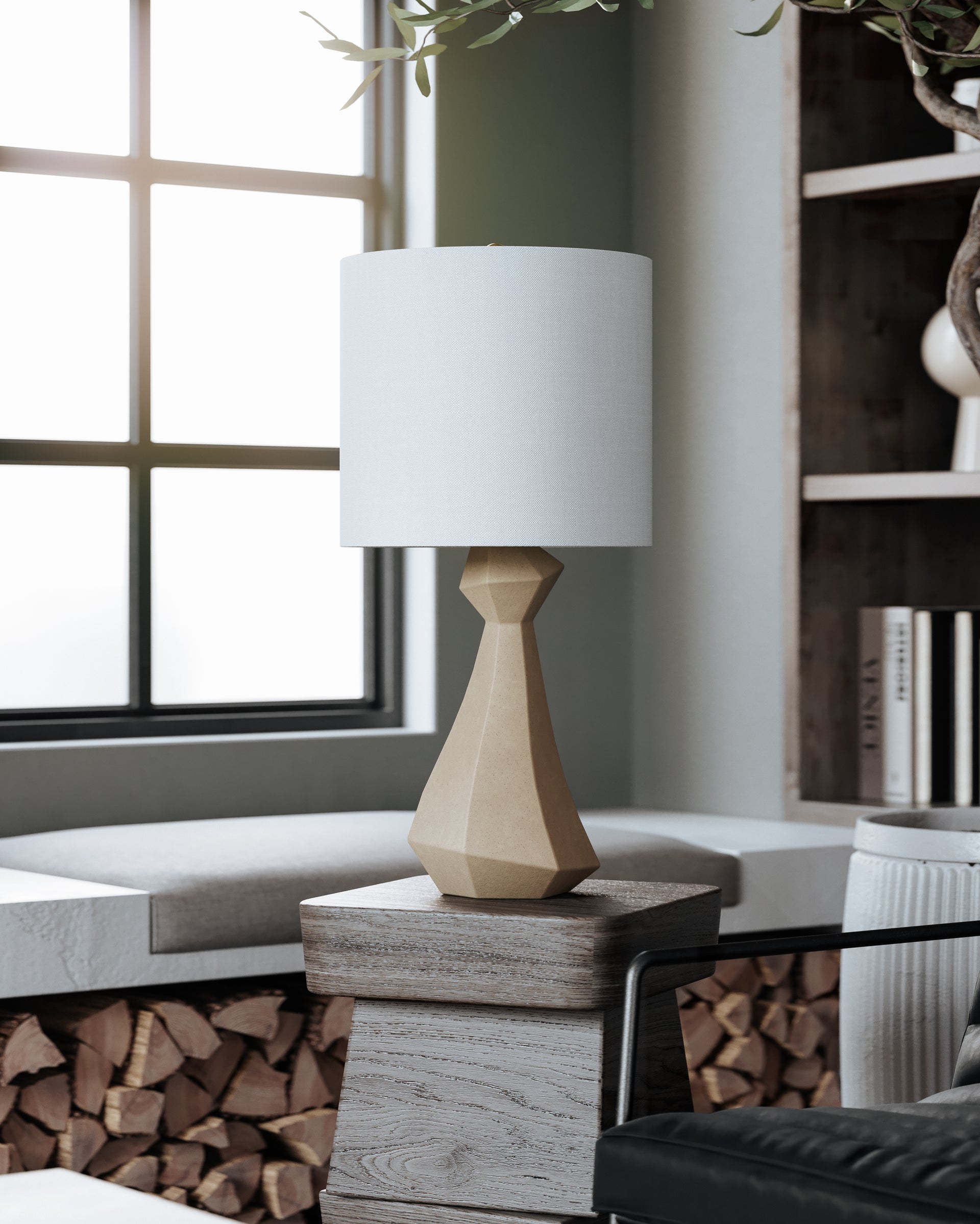 The smooth, fluid base of this sculptural table lamp works to soften and refine the concrete it is sculpted from. Perfectly imperfect, the fixture has a sense of movement and evokes a feeling of calm. The taupe concrete and off-white linen shade add to the fixture's overall organic feel.