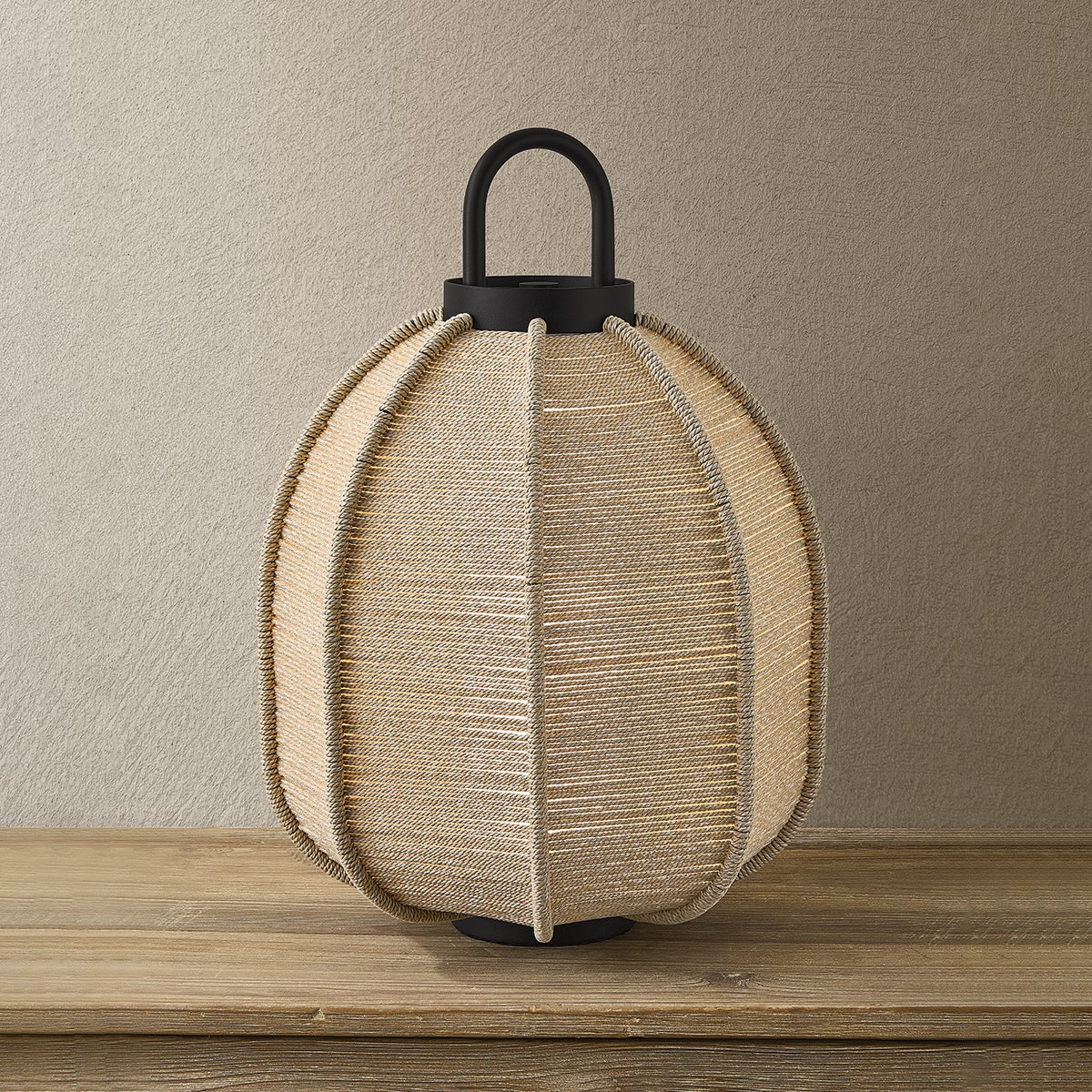 The Maltby lantern is designed to adapt to a variety of outdoor living areas, bringing light where hardwired fixtures aren’t possible. Wrapped in woven polypropylene cord and finished in Textured Black, it is weather-resistant, stylish, and built to last. Available in two sizes, the lanterns can be used alone as a table lamp, hung on a small or large wall hook as a sconce or placed on a lamp stand for ambient lighting. Simply remove and recharge the battery-powered LED when needed.