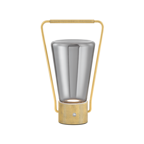 This petite portable is a moody everyday basic. A charming modern twist on a lantern design, Booker features a smoke glass shade and an Aged Brass frame. Its highly usable form is complemented by a tactile handle that invites you to grab and carry it with ease. Booker is perfectly sized for smaller spaces in need of a design pick-me-up.