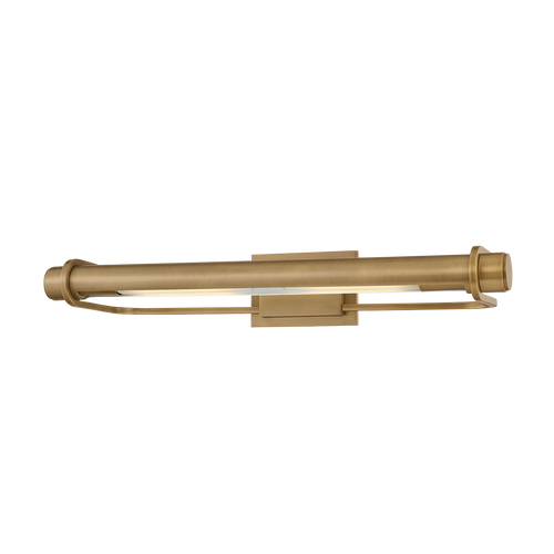 The Caspian family draws inspiration from soft hardware forms, translating sweeping metal lines into a tailored picture light. A continuous arm encases the tubular shade, balancing function with form. Finished in Patina Brass and available in two sizes, it casts a focused beam across artwork or architectural details.