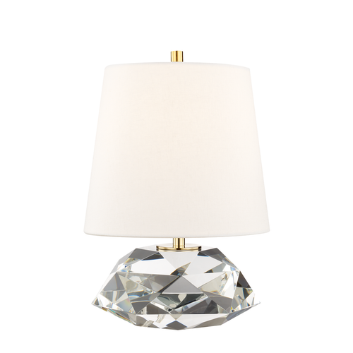 A table lamp sometimes adds a visual weight that helps anchor a space at the same time it illuminates it and provides a decorative accent. Henley’s dense base of multifaceted crystal has that effect. A perfectly proportioned shade of Belgium linen completes this glamorous addition.