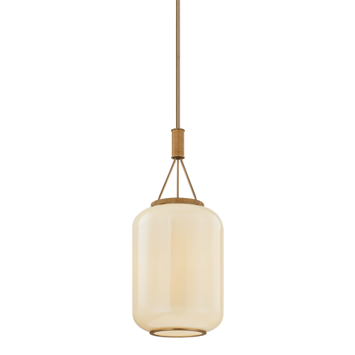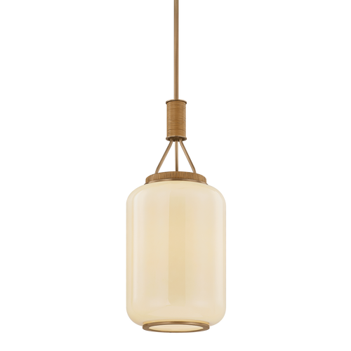 Drawing inspiration from a paper lantern, Judson reinterprets a familiar silhouette with elevated materials. The elongated cream opal glossy glass shade emits an atmospheric glow, while the wrapped rattan and Patina Brass accents introduce texture and warmth to the frame. Available in two sizes, Judson is the perfect balance of minimalism and soul.
