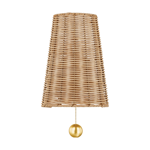Drawing inspiration from vintage baskets, Naida is a petite sconce with a big personality. Rustic and rooted in nature, the woven rattan wicker shade brings coastal energy to modern interiors. The addition of a chunky and whimsical pull chain, elegantly finished in Aged Brass, provides the perfect finishing touch to this piece.